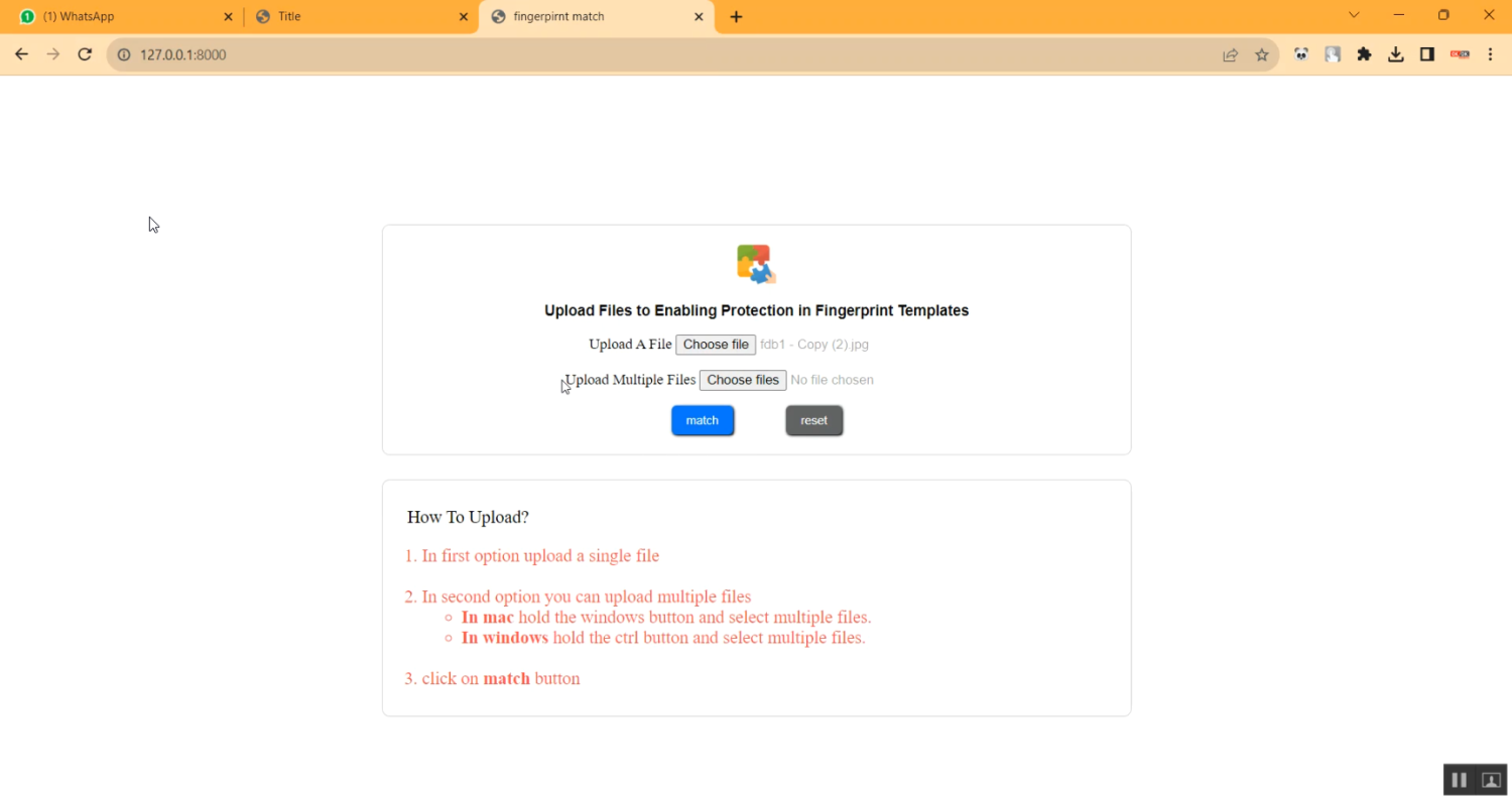 The proposed system introduces a Python-based fingerprint matching framework with image upload functionality, combining image preprocessing, feature extraction, and machine learning classification. Uploaded fingerprint images are preprocessed using grayscale conversion, noise reduction, contrast enhancement, and normalization to highlight ridge patterns. Feature extraction techniques—including minutiae points, Gabor filters, and texture descriptors—capture the unique characteristics of each fingerprint. The extracted features are then compared with the database using classifiers such as Support Vector Machines (SVM), Random Forest, or CNN-based deep learning models to determine matches. The system outputs a verification result, match score, and highlights matching areas for transparency. The framework is implemented with Python libraries including OpenCV for image processing, Scikit-learn and TensorFlow/Keras for model training, and NumPy for numerical operations. By combining advanced feature extraction, machine learning, and a user-friendly image upload interface, this project provides a scalable, accurate, and secure fingerprint authentication solution suitable for high-security applications.