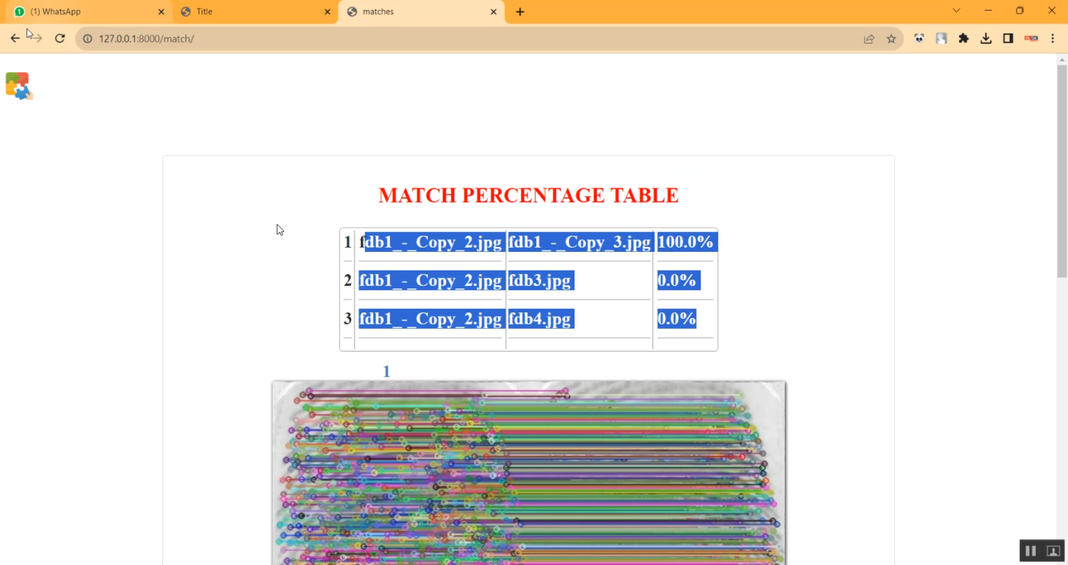 Fingerprint authentication is a critical component of advanced security frameworks in both digital and physical systems. This project focuses on developing a Python-based Fingerprint Match system that allows users to upload images and verify identity using a robust matching framework. The system preprocesses uploaded fingerprint images, extracts unique features, and compares them against a stored database using machine learning and pattern-matching techniques. Implemented using Python libraries such as OpenCV, Scikit-learn, NumPy, and TensorFlow/Keras, the application provides an automated, accurate, and user-friendly solution for identity verification, access control, and secure authentication in various environments.