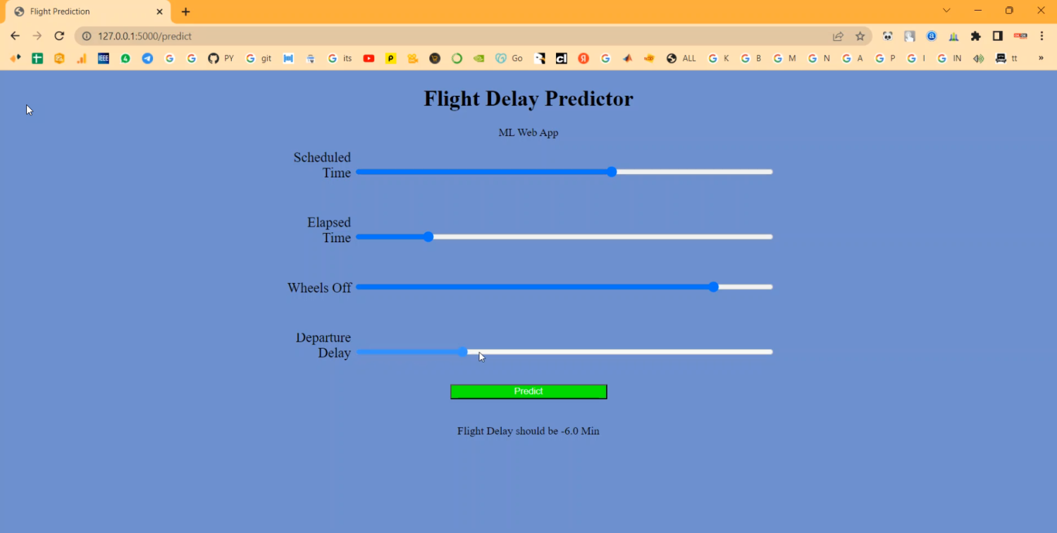 The proposed system implements a Python-based machine learning framework integrated with a Flask web application for flight delay prediction. Historical flight datasets—including information on departure and arrival times, airlines, airports, weather conditions, and air traffic—are preprocessed by handling missing values, encoding categorical variables, and normalizing numerical features. Feature selection and extraction are applied to identify the most influential factors affecting flight delays. Machine learning classifiers such as Logistic Regression, Random Forest, Gradient Boosting, or XGBoost are trained to predict flight delay likelihood. The Flask application provides an interactive interface where users can input flight details, receive predictions in real time, and visualize probabilities of delays. Python libraries such as Pandas, NumPy, Scikit-learn, and Flask are used for data preprocessing, model training, and web deployment. By combining machine learning with an accessible web interface, the system provides a scalable, accurate, and practical solution for predicting flight delays, enabling better planning for airlines, airports, and passengers.