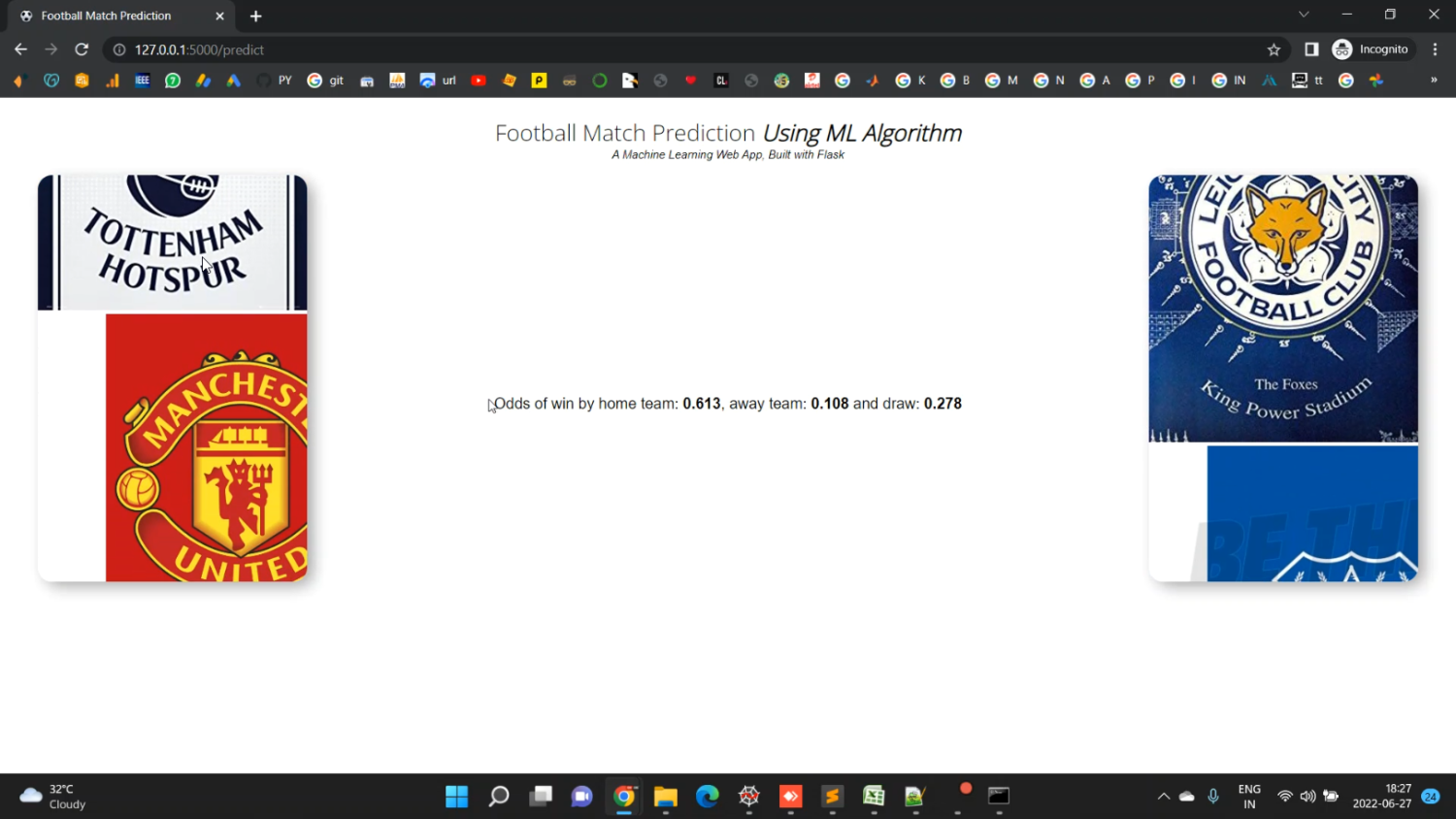 Football match prediction is one of the most challenging and fascinating applications of data science and artificial intelligence due to the sport’s dynamic and unpredictable nature. This project focuses on developing a Python-based Football Match Prediction system using Artificial Neural Networks (ANN) to improve prediction accuracy. The system analyzes historical match data, team performance metrics, player statistics, and other influencing factors to predict possible outcomes such as win, loss, or draw. Implemented using Python libraries like TensorFlow/Keras, Pandas, NumPy, and Scikit-learn, the ANN model learns complex patterns from large datasets to enhance accuracy. The project provides a robust, data-driven solution for sports analysts, betting systems, and enthusiasts to forecast match results with greater reliability.