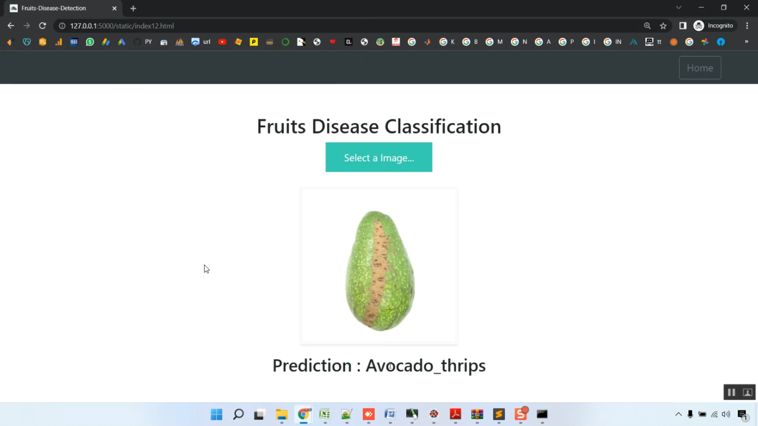 The proposed system implements a CNN-based framework to detect fruit diseases accurately from images. Input images are preprocessed using resizing, normalization, and augmentation techniques to improve model generalization and accuracy. The CNN architecture automatically extracts hierarchical features from the images and classifies the disease type based on learned patterns. The Flask web application provides an interactive platform where users can upload fruit images, initiate predictions, and view results with disease labels and confidence scores. Python libraries such as TensorFlow/Keras are used for model training, OpenCV for image processing, NumPy for numerical operations, and Flask for web deployment. By combining deep learning with a user-friendly web interface, the system enables scalable, automated, and accurate disease detection, assisting farmers in timely crop management and reducing losses due to infections.