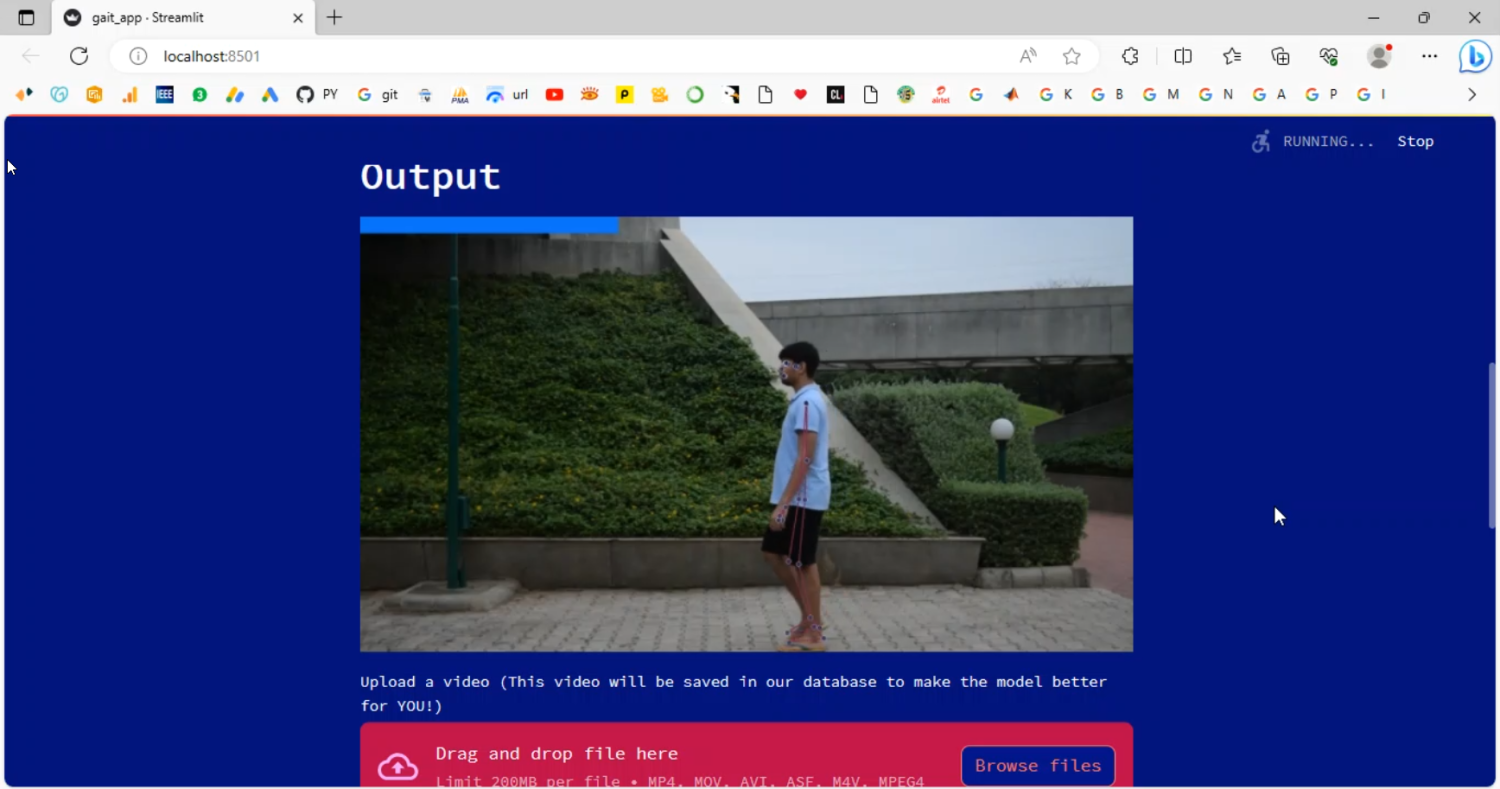 The proposed system implements a Python-based framework for gait detection using video streams and a Streamlit interface. Input videos are preprocessed to extract frames, normalize scale, and detect human silhouettes. Feature extraction techniques, such as pose estimation, joint tracking, and gait cycle analysis, are applied to capture unique walking patterns. Machine learning classifiers or deep learning models, including CNNs or LSTM networks, are trained to recognize individuals based on these gait features. The Streamlit application provides an interactive platform for uploading videos, processing gait analysis, and visualizing results with identification outputs and confidence scores. Python libraries such as OpenCV for video and image processing, TensorFlow/Keras for model training, NumPy and Pandas for data handling, and Streamlit for deployment are utilized. By combining gait feature extraction, machine learning classification, and an interactive web interface, the system offers an accurate, scalable, and non-intrusive solution for identity recognition and security monitoring.