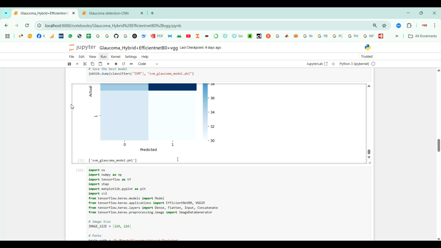 Glaucoma is a chronic eye disease that causes irreversible vision loss due to optic nerve damage, often progressing without noticeable symptoms. Early detection is critical to prevent severe visual impairment. The project Glaucoma Detection using CNN in Python Projects focuses on developing an automated system that can detect glaucoma from retinal fundus images using Convolutional Neural Networks (CNNs). Python is used as the development platform because of its powerful libraries for image processing, machine learning, and deep learning, including OpenCV, TensorFlow, Keras, and NumPy. The system preprocesses fundus images to enhance contrast, remove noise, and normalize size, then uses CNN architectures to extract features and classify images as glaucomatous or healthy. This automated detection aids ophthalmologists in early diagnosis, improving patient outcomes and reducing the need for manual examination of large image datasets.