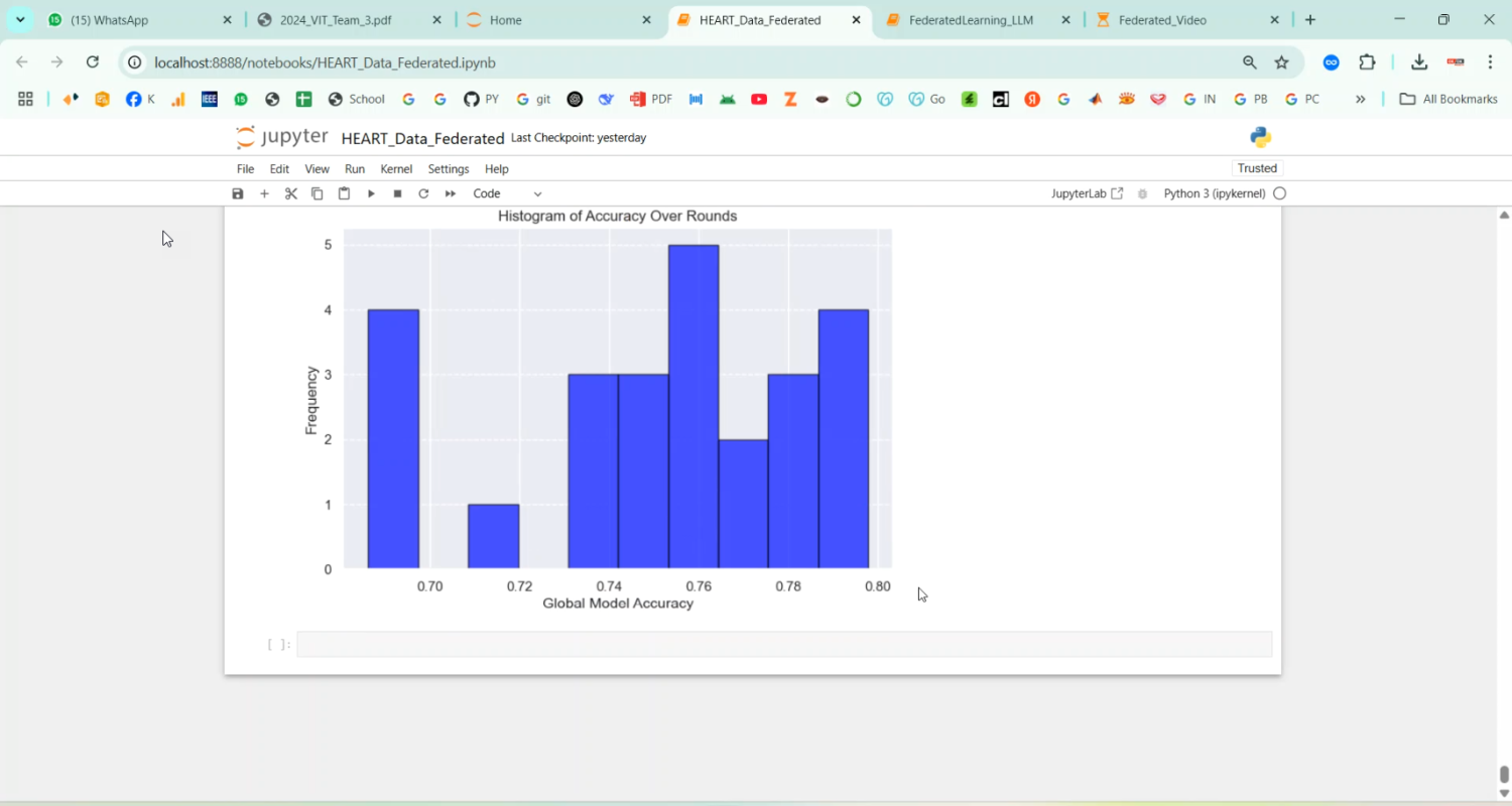 The proposed system introduces a Python-based federated learning framework for heart disease prediction. Patient data remains localized within each participating institution, and only model updates (gradients or parameters) are shared with a central server for aggregation. Data preprocessing, feature extraction, and normalization are performed locally on each site to maintain consistency. Machine learning models, including Logistic Regression, Random Forest, Gradient Boosting, and deep learning models such as Artificial Neural Networks (ANN) or CNNs, are trained in a federated setup. The aggregated global model benefits from knowledge across multiple institutions without exposing sensitive patient information. Performance evaluation is conducted using metrics like accuracy, precision, recall, F1-score, and ROC-AUC. By combining federated learning with predictive analytics, the system ensures secure, collaborative, and scalable heart disease prediction, enabling early diagnosis, risk assessment, and improved healthcare outcomes.