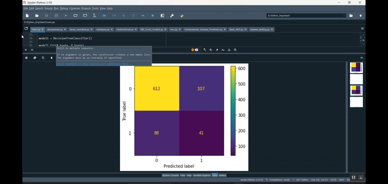 Heart disease is one of the leading causes of death globally, making early prediction and diagnosis essential for preventive care. This project focuses on developing a Python-based Heart Disease Classification system using machine learning (ML) algorithms. The system analyzes patient data, including age, gender, blood pressure, cholesterol levels, ECG results, and other relevant clinical features, to predict the presence or absence of heart disease. Implemented using Python libraries such as Pandas, NumPy, Scikit-learn, and Matplotlib, the model trains on labeled datasets to provide accurate and reliable predictions. The system aims to assist healthcare professionals in making informed decisions, improving patient outcomes, and reducing risks associated with late detection.