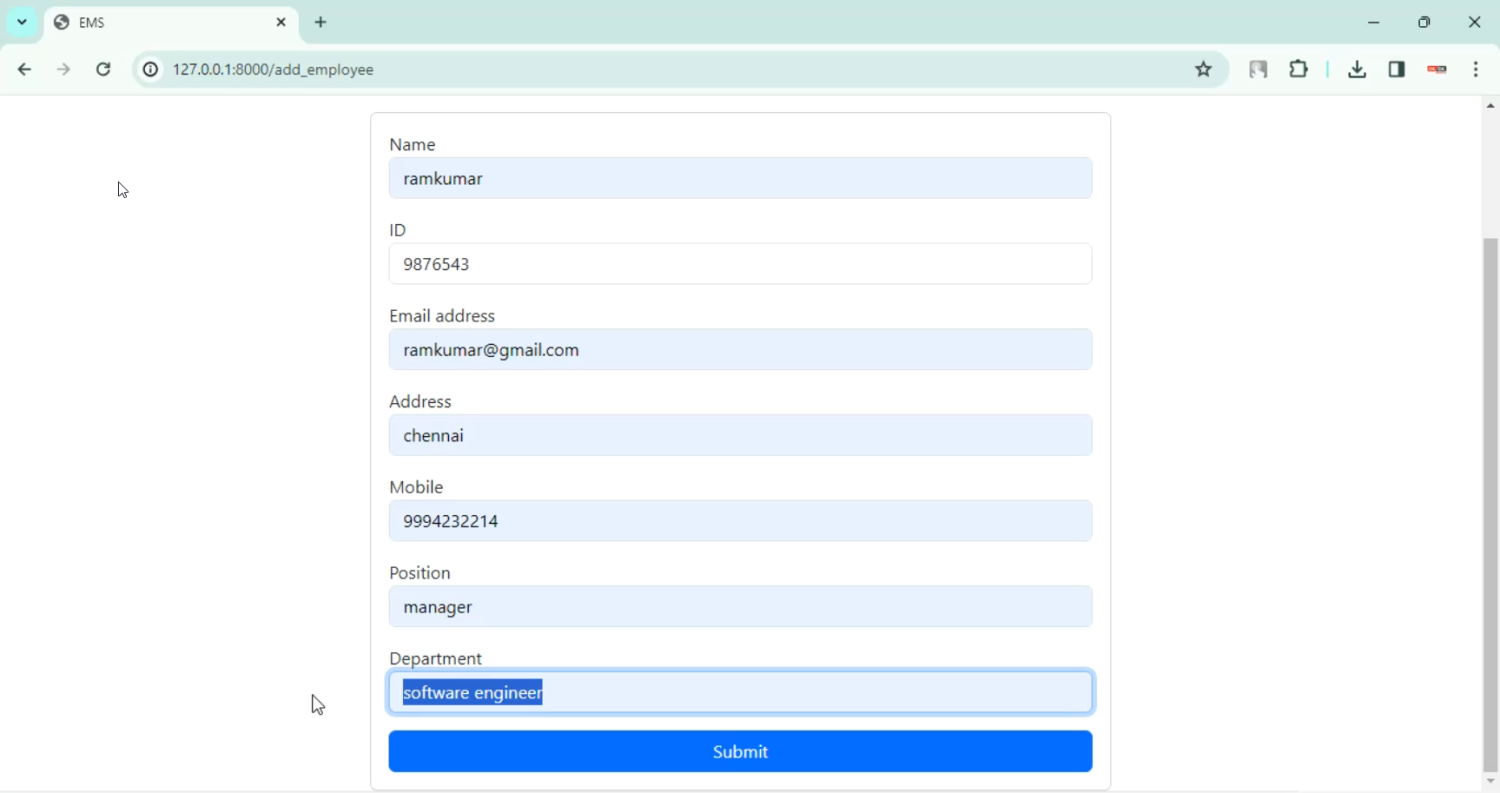 Effective human resource management is vital for optimizing workforce performance, maintaining employee records, and streamlining HR processes. This project focuses on developing an HR Employee Management System in Django Python, designed to manage employee information, attendance, leave requests, payroll, and performance tracking. The system provides a centralized platform where HR administrators can handle all employee-related operations efficiently, while employees can access their profiles, submit requests, and view personal records. Leveraging Django’s secure and scalable framework, the system improves organizational productivity, reduces manual errors, and enhances communication between HR and employees.