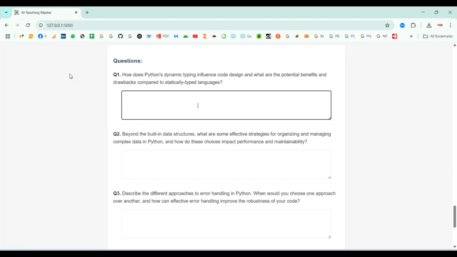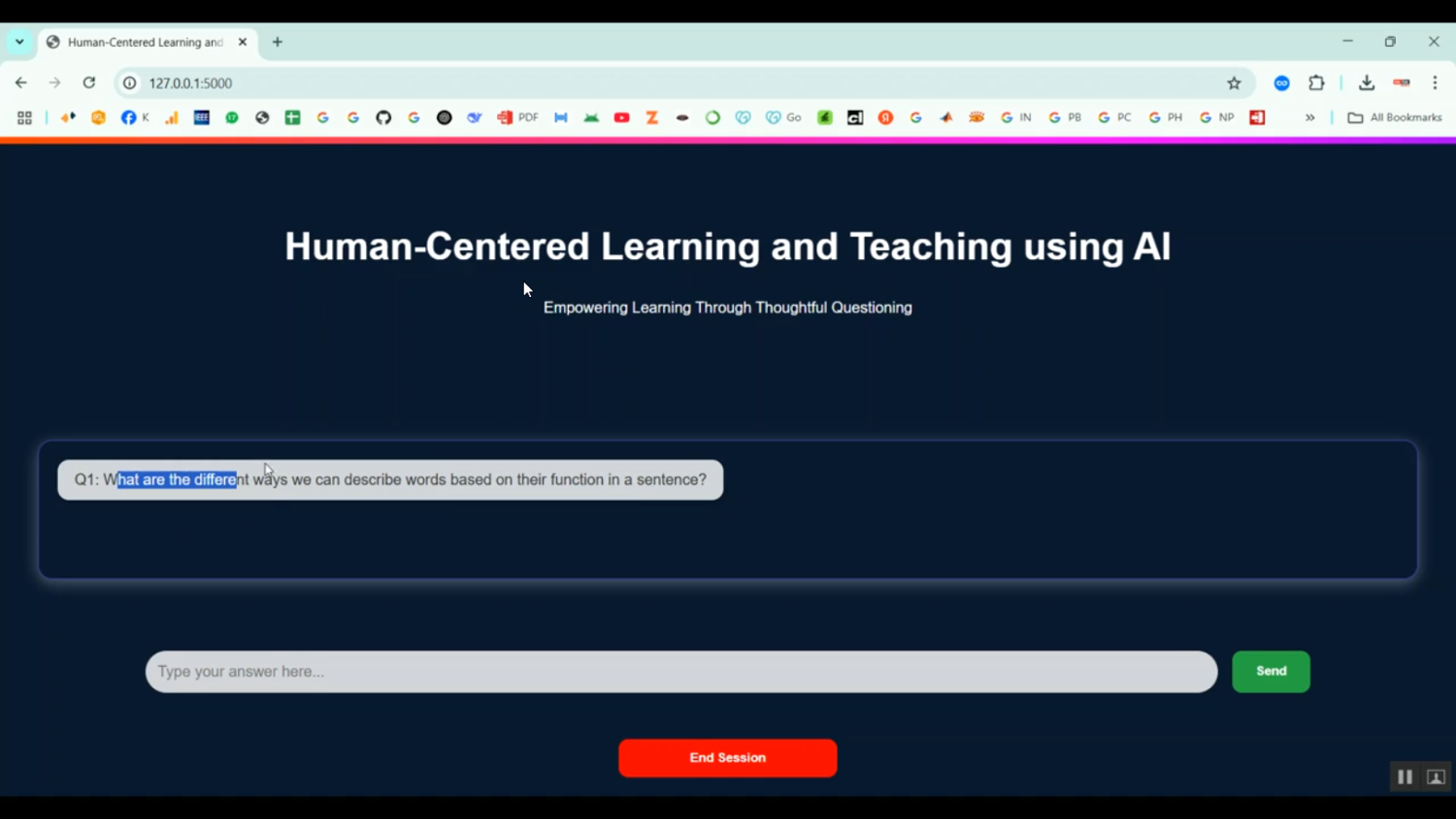 The proposed system introduces a Python-based AI framework for human-centered learning and teaching. Data from student interactions, assessment results, learning preferences, and engagement metrics are collected and preprocessed to ensure consistency and reliability. Machine learning models, including clustering, decision trees, neural networks, and reinforcement learning, are applied to identify learning gaps, predict performance, and recommend personalized learning pathways. Natural language processing (NLP) techniques are used to analyze student responses, questions, or essays to provide automated feedback. The system generates visual dashboards for teachers and students, showing progress, recommended actions, and adaptive content delivery. By integrating AI-driven insights with pedagogy, the system enhances individualized learning, improves teaching effectiveness, and fosters a human-centered educational environment where students receive tailored guidance and support.