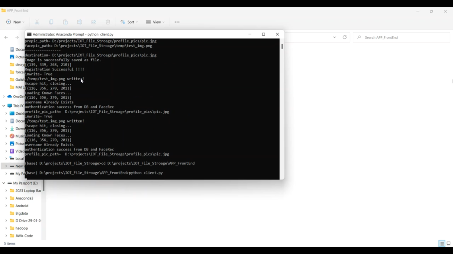 With the rapid expansion of Internet of Things (IoT) systems and cloud-based services, secure data storage and authentication have become essential challenges. This project introduces an IoT-Based File Storage System with Face Authentication developed using Python. The system integrates IoT devices for remote access and a face recognition mechanism to ensure secure user authentication before allowing data storage or retrieval. Using machine learning and computer vision techniques, the application detects and verifies a user’s facial features in real time through webcam or camera-enabled IoT devices. Once authenticated, users can upload, download, and manage files securely over a network. The project employs Python libraries such as OpenCV, NumPy, face-recognition, Flask, and IoT communication modules like MQTT or HTTP APIs to provide a secure and efficient data management solution.