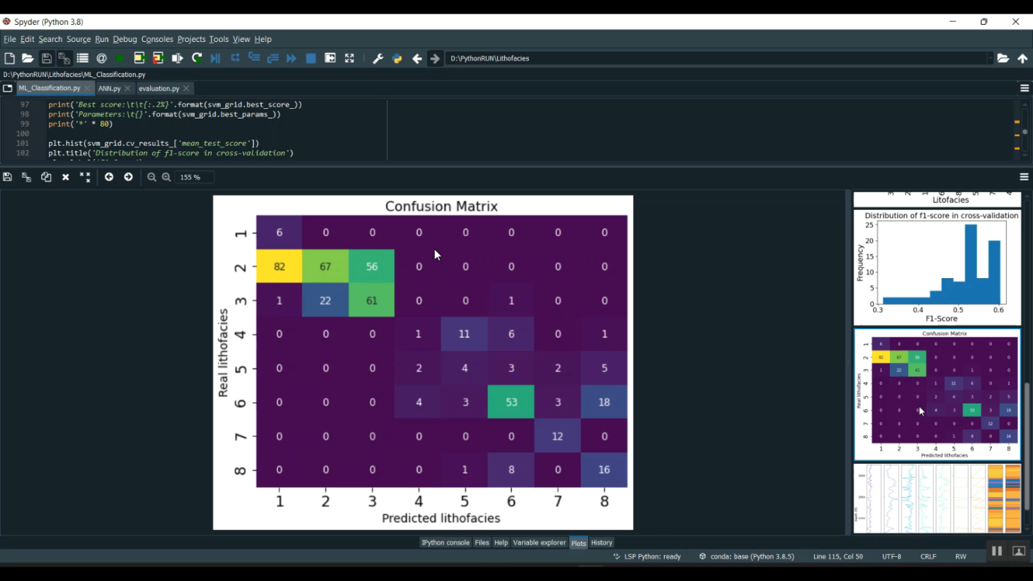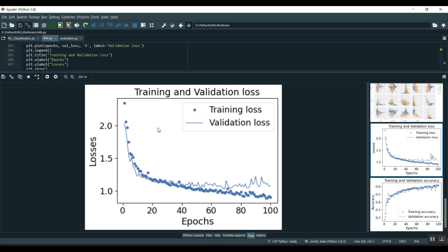 Lithofacies classification plays a critical role in geological modeling and reservoir characterization by identifying rock types and depositional environments from well log data. The project “Lithofacies ANN ML Classification Train in Python” aims to build an intelligent system that automatically classifies lithofacies using Artificial Neural Networks (ANN). The model is trained on geological and petrophysical parameters such as gamma-ray, neutron porosity, resistivity, and density logs. By leveraging machine learning and deep learning algorithms, the system enhances prediction accuracy and reduces human interpretation errors. Python serves as the core development environment, utilizing libraries such as TensorFlow, Scikit-learn, Pandas, and NumPy. The trained ANN model effectively learns nonlinear relationships in subsurface data, enabling automated lithofacies classification and improving the efficiency of geoscientific decision-making.