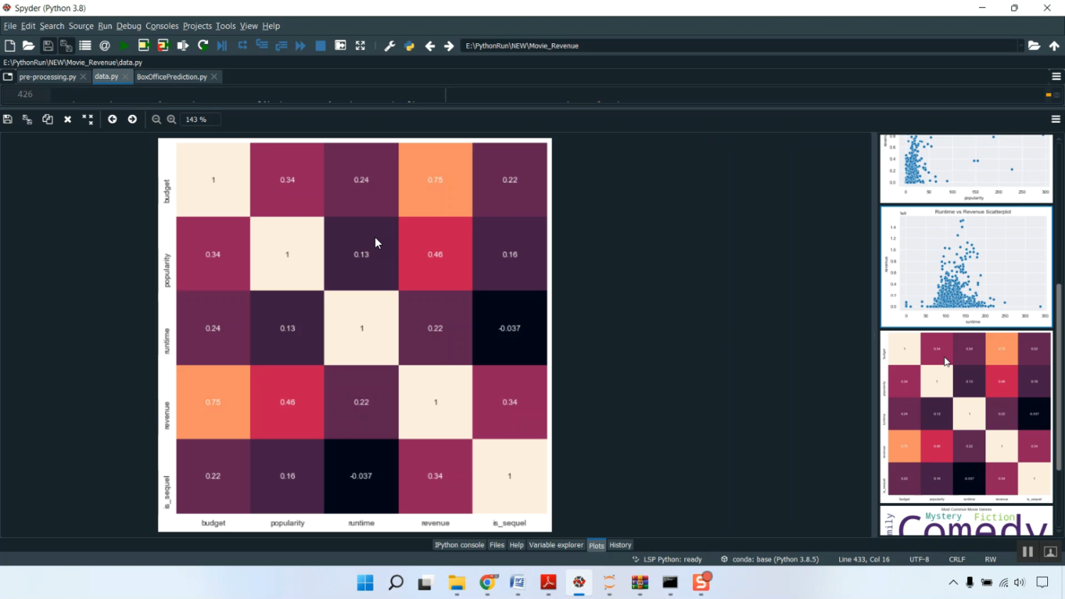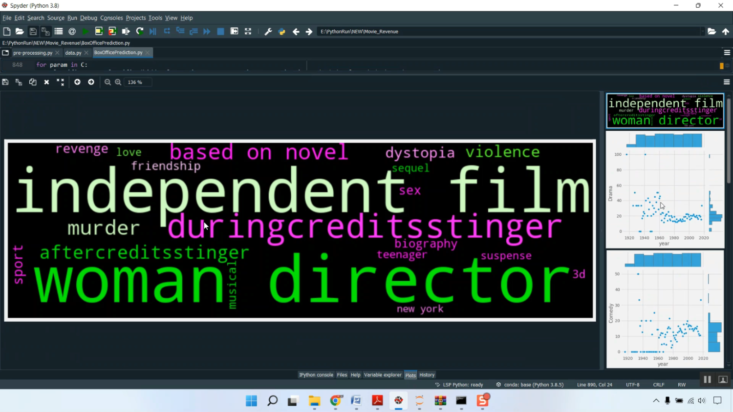 The Movie Revenue Prediction Project is a machine learning–based system developed in Python to predict the box office revenue of movies based on various attributes such as cast, genre, director, budget, release date, and promotional activities. The project uses historical movie data to train predictive models that can estimate a film’s potential financial success. By analyzing patterns and correlations between input features and revenue outcomes, the system provides valuable insights for production houses, investors, and marketers. Python libraries such as Pandas, NumPy, Scikit-learn, and Matplotlib/Seaborn are used for data preprocessing, model training, evaluation, and visualization. This project helps in data-driven decision-making, enabling stakeholders to optimize marketing strategies, budget allocation, and production planning.
