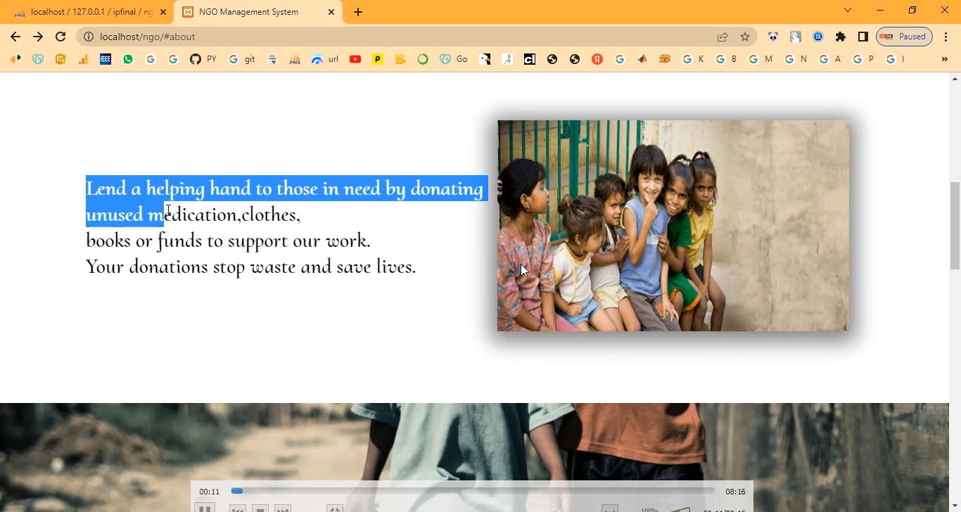 The NGO Management System is a PHP–MySQL based web application designed to automate and streamline the operations of non-governmental organizations (NGOs). The system allows administrators to manage projects, donors, volunteers, events, and financial contributions efficiently. By centralizing data management, the system ensures transparency, improves communication, and enables better tracking of resources and activities. It also helps NGOs generate reports on donations, volunteer participation, and project progress for internal and external stakeholders.