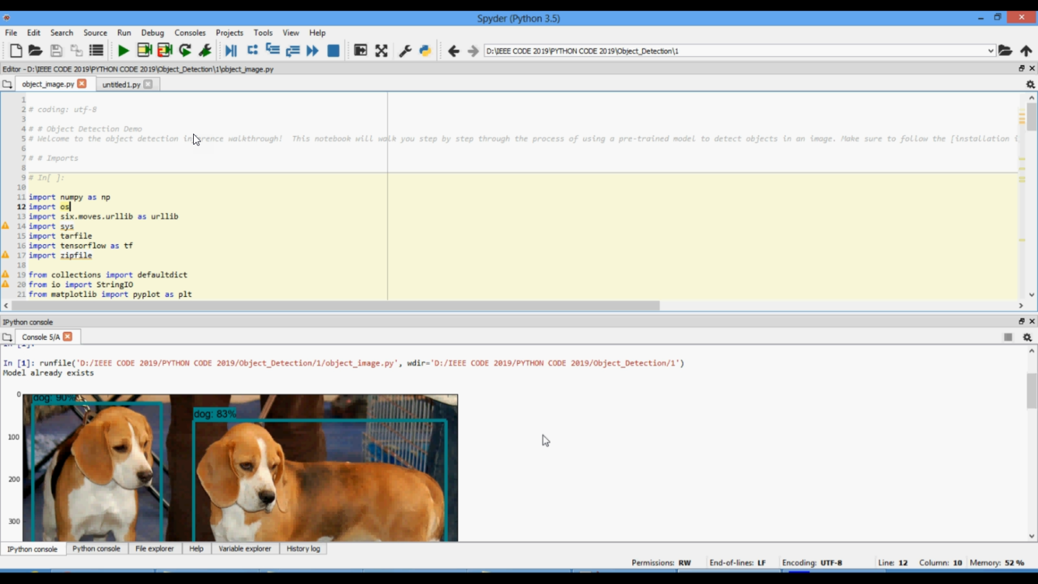 The Object Detection Web Cam Project is a Python-based system designed to detect and classify objects in real time using a computer’s webcam. The project leverages computer vision and deep learning techniques to identify multiple objects from live video feeds with high accuracy. Using pre-trained models such as YOLO (You Only Look Once), SSD (Single Shot Detector), or Faster R-CNN, the system can recognize various objects, track movement, and label them with bounding boxes and confidence scores. Implemented using Python with libraries like OpenCV, TensorFlow/Keras, and NumPy, the project provides a foundation for real-time surveillance, robotics, and AI-based automation applications. It can be deployed as a standalone desktop program or integrated into a web interface for broader accessibility.