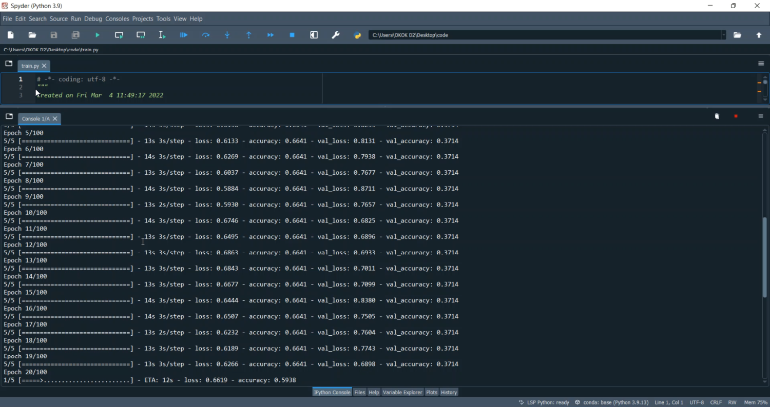 The Oral Cancer Train CNN in Python Project focuses on developing a deep learning-based model to detect and classify oral cancer from medical images using Convolutional Neural Networks (CNNs). The project aims to assist in the early identification of cancerous lesions in oral tissue through automated image analysis. By training the CNN model on a dataset of oral cavity images, the system learns to distinguish between normal, precancerous, and malignant tissues with high accuracy. Implemented in Python, this project leverages libraries such as TensorFlow, Keras, and OpenCV for model training, image preprocessing, and evaluation. The approach reduces the need for invasive diagnostic methods and provides healthcare professionals with a faster, more reliable tool for clinical decision-making.