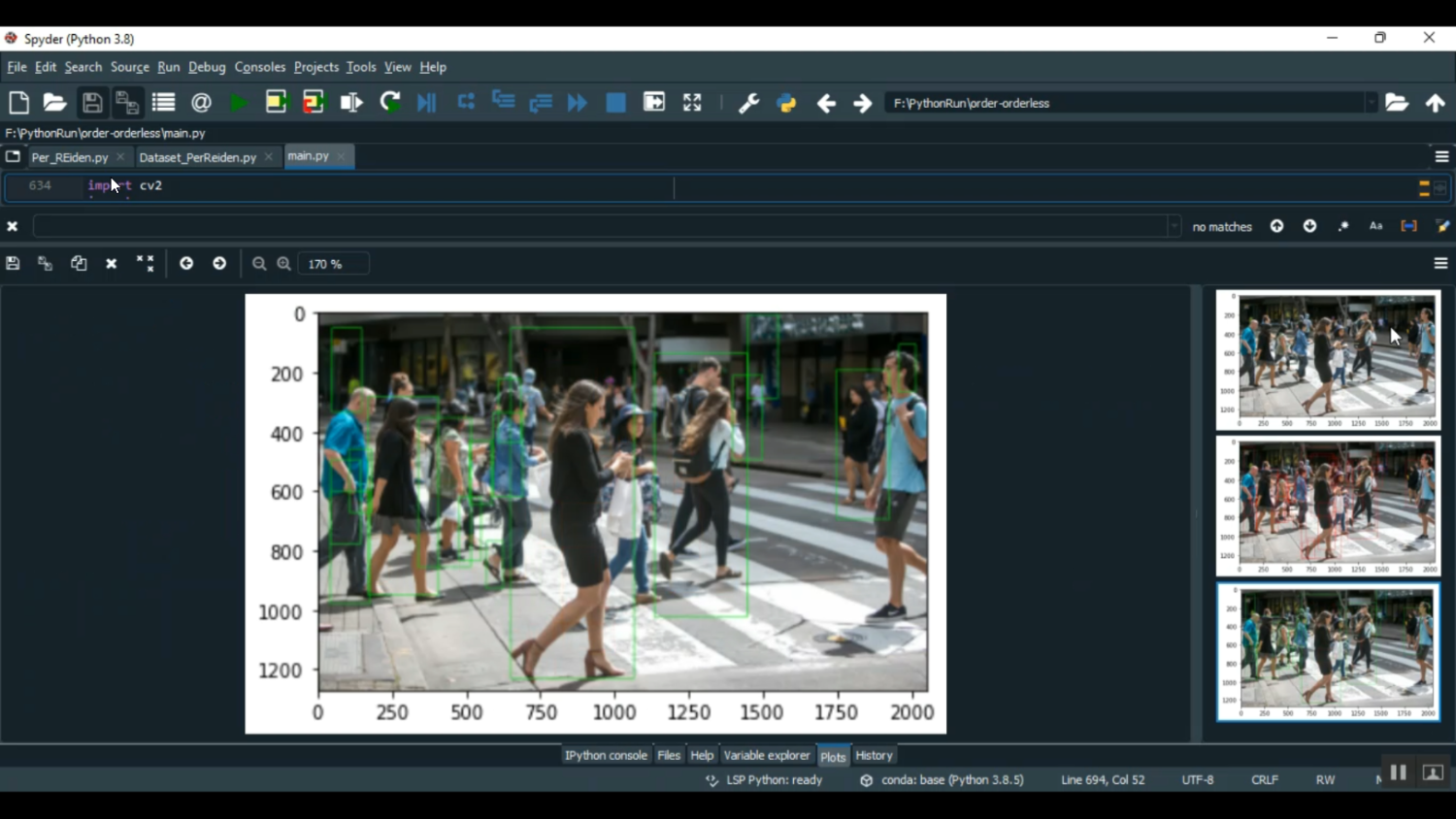 The proposed system eliminates the dependency on spatial order by employing an orderless deep learning model that treats each pedestrian independently based on learned visual features rather than positional relationships. The system uses a CNN-based detection network trained on large pedestrian datasets such as INRIA or Caltech Pedestrian Dataset. Through robust feature extraction and bounding box prediction, the model can detect multiple pedestrians simultaneously, even with occlusions or irregular motion. The process involves image preprocessing, region proposal, feature extraction, classification, and detection visualization. The project’s Python implementation integrates with OpenCV for live video analysis and can be further deployed for smart city applications, crowd analytics, and autonomous navigation systems. This approach enhances detection accuracy, robustness, and adaptability across different scenes and camera perspectives.