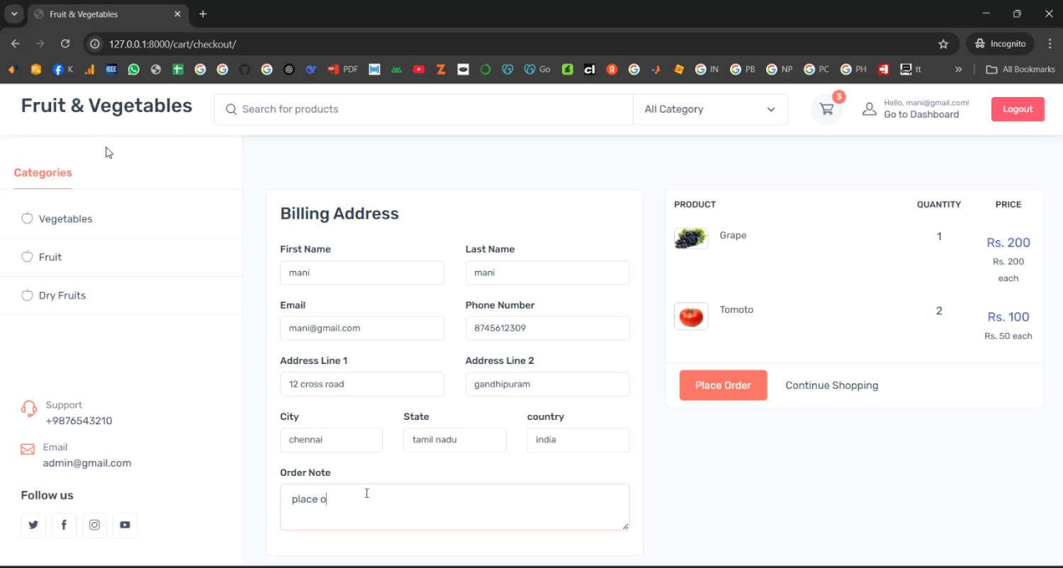 Organic fruit and vegetables selling Web app in Django Python