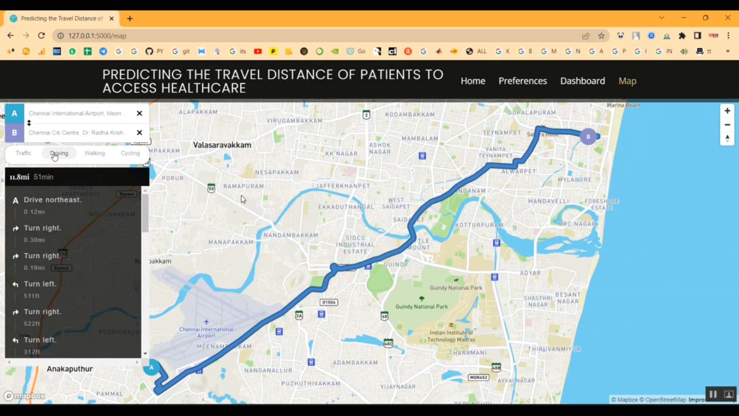 Existing patient travel assistance systems primarily rely on manual directions or generic map services that do not consider the patient’s medical needs, accessibility requirements, or current health condition. These systems may suggest routes that are physically challenging or unsuitable for patients with mobility issues, chronic illnesses, or urgent care needs. Additionally, traditional systems lack intelligent recommendation features that consider patient-specific data, resulting in inefficient travel planning and delayed access to healthcare services.