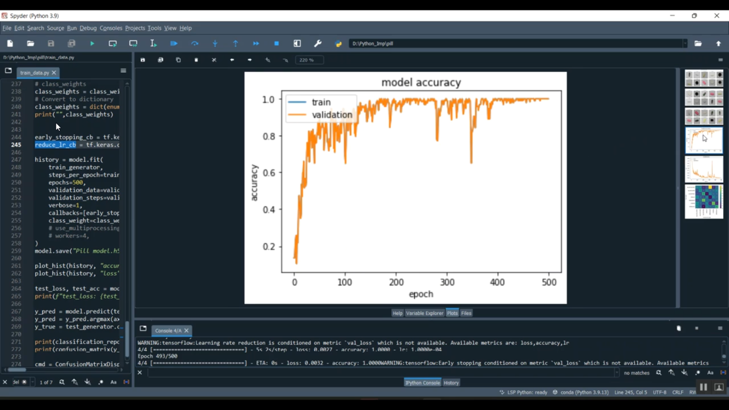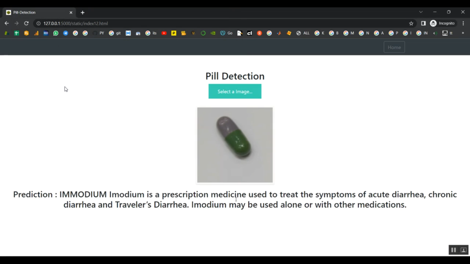 The Pill Detection Train CNN Flask App Project is a Python-based system designed to automatically detect and classify pills using Convolutional Neural Networks (CNNs) and provide an interactive web interface via Flask. This project helps in identifying different types of medications accurately from images, reducing errors in pharmacies, hospitals, and healthcare settings. The system leverages a labeled pill image dataset to train a CNN model to recognize various pill shapes, sizes, and colors. Implemented using Python libraries such as TensorFlow/Keras, OpenCV, NumPy, Pandas, and Flask, the system enables users to upload pill images through the web application, perform real-time detection and classification, and display the pill name along with relevant information. This approach improves medication safety, assists healthcare professionals, and streamlines pharmaceutical management.