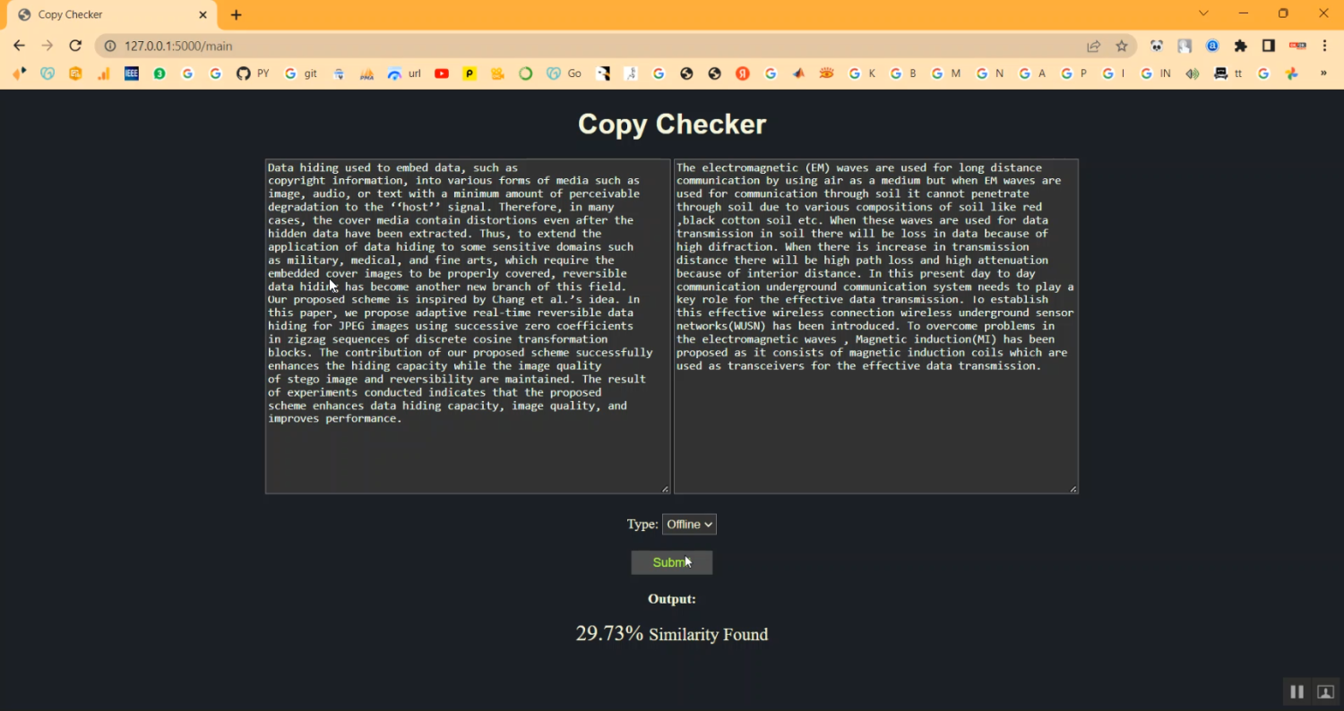 Plagiarism Checker using Flask App in Python Projects