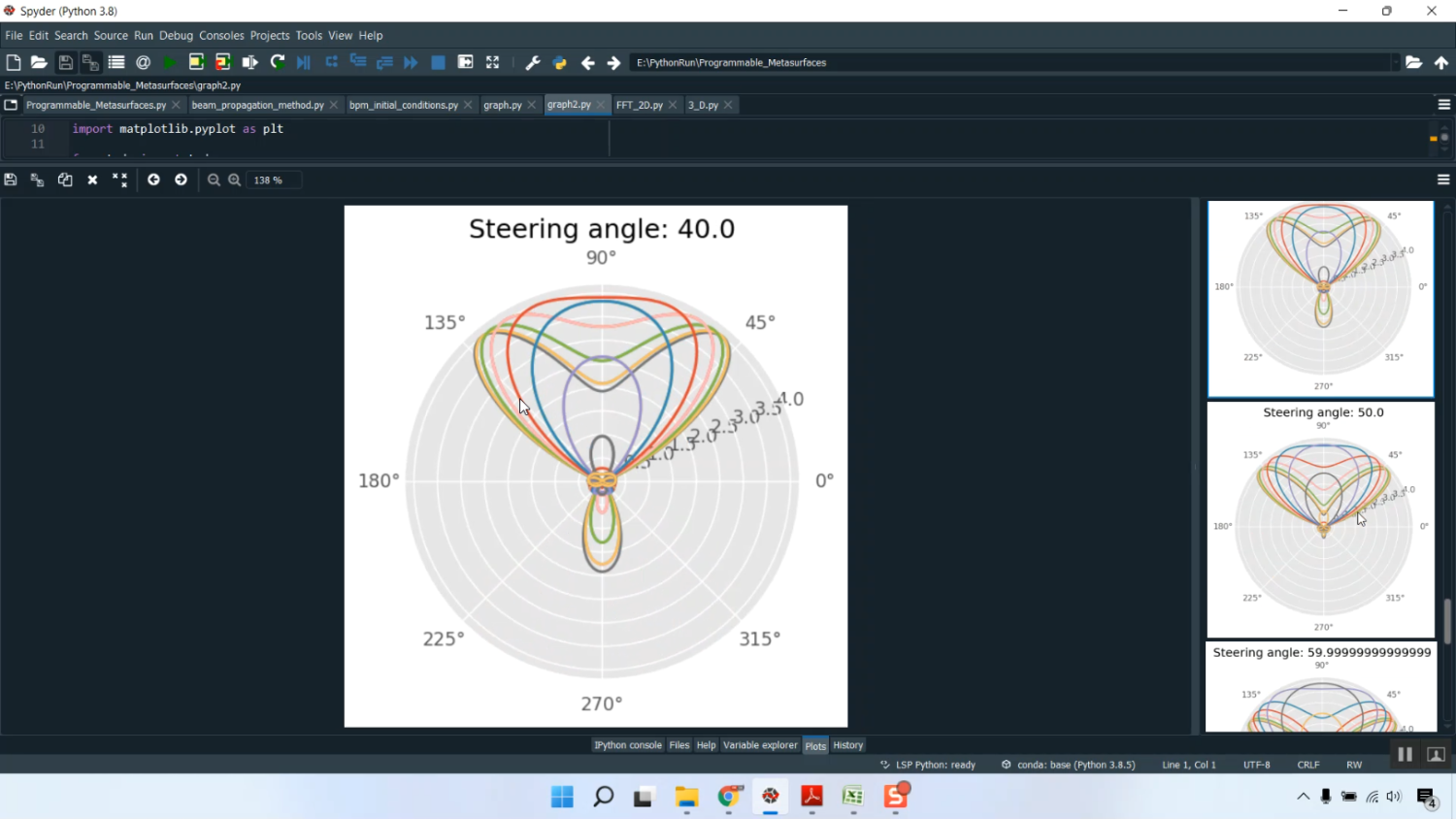 The Programmable Metasurfaces in Python Project explores the development and simulation of reconfigurable electromagnetic metasurfaces using Python-based computational tools. Metasurfaces are artificially engineered 2D materials composed of sub-wavelength unit cells that can manipulate electromagnetic waves in a controlled manner. Programmable metasurfaces allow dynamic control of wave properties such as reflection, absorption, and beam steering through software-defined configurations. This project uses Python libraries such as NumPy, SciPy, Matplotlib, and electromagnetic simulation tools to model and analyze metasurface behavior. The objective is to design programmable metasurface architectures and simulate their performance for applications in wireless communication, radar imaging, beamforming, and 6G intelligent surfaces. The project provides a foundation for implementing intelligent reconfigurable surfaces that can enhance signal strength and wireless coverage in modern communication systems.