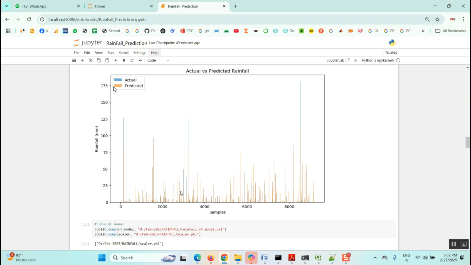 The proposed system introduces a Python-based rainfall prediction framework that integrates historical weather data and advanced machine learning models for accurate forecasting. Data preprocessing steps include cleaning missing values, normalization, and feature selection to improve model performance. Regression models such as Linear Regression, Random Forest Regression, or Gradient Boosting are employed, along with deep learning architectures like LSTM and GRU for capturing temporal dependencies in time-series weather data. The system is evaluated using metrics such as Mean Absolute Error (MAE), Root Mean Squared Error (RMSE), and R-squared to measure prediction accuracy. By combining data-driven modeling, machine learning, and real-time analysis, the system provides a scalable, reliable, and accurate solution for rainfall prediction, enabling proactive planning for agriculture, disaster management, and water resource management.