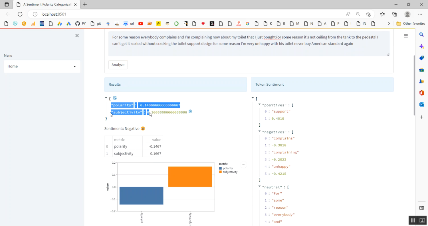 The Sentimental Polarity Streamlit App Project is a Python-based web application designed to analyze textual data and determine its sentiment polarity as positive, negative, or neutral. The system leverages Natural Language Processing (NLP) techniques and machine learning algorithms to process text from sources such as social media posts, product reviews, and customer feedback. Python libraries such as Streamlit, Pandas, NumPy, NLTK, Scikit-learn, and Matplotlib are used for data preprocessing, feature extraction, model training, and visualization. The Streamlit interface allows users to input text and receive real-time sentiment predictions along with visual feedback. This project provides an interactive and automated tool for understanding public opinion, improving customer engagement, and supporting data-driven decision-making.