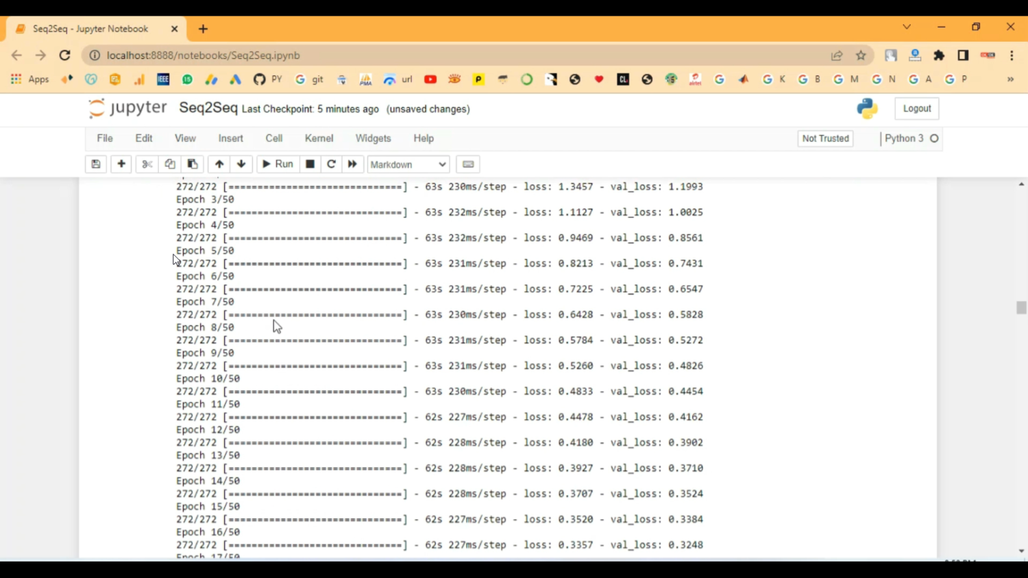 The proposed system uses a SEQ2SEQ neural network framework to handle sequential data effectively. The input sequences are preprocessed through normalization, tokenization (for textual data), or feature scaling (for numerical sequences). The SEQ2SEQ model typically consists of an encoder that compresses the input sequence into a fixed-size context vector and a decoder that generates the output sequence step by step. Python libraries like TensorFlow/Keras facilitate model construction, training, and inference, while Matplotlib/Seaborn visualize the model’s performance, loss curves, and sequence prediction accuracy. This approach captures long-term dependencies in sequential data, supports variable-length inputs and outputs, and improves predictive performance for tasks in NLP, time-series forecasting, and other sequential data applications.