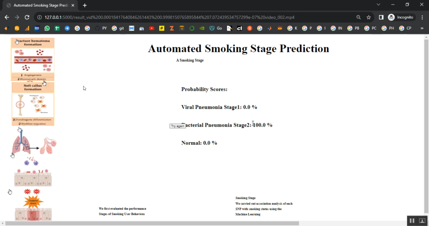 The proposed system introduces a Python-based machine learning framework to predict the stage of smoking behavior among users. Data from surveys, social platforms, or wearable devices is preprocessed to handle missing values, normalize features, and encode categorical variables. Machine learning models such as random forests, gradient boosting, or neural networks are trained on labeled datasets to classify users into stages like experimentation, occasional use, regular use, or cessation. The system evaluates model performance using metrics like accuracy, precision, recall, and F1-score, ensuring reliable predictions. Visualizations using Matplotlib or Seaborn illustrate patterns, trends, and correlations in smoking behavior. The system can be extended into a web interface or mobile application for real-time monitoring and personalized recommendations, supporting preventive healthcare and promoting smoking cessation programs. By leveraging data-driven insights, the proposed system enables targeted interventions and proactive health management.