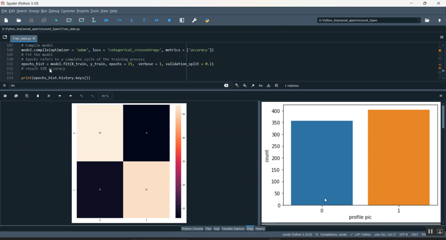 The proposed system introduces a Python-based machine learning framework for detecting social spam on Instagram. The system collects data from Instagram accounts, posts, comments, likes, and follower activity. After preprocessing, features such as posting frequency, follower-following ratio, comment content, and engagement patterns are extracted for analysis. Machine learning models like decision trees, random forests, support vector machines, or ensemble methods are trained to classify accounts or activities as spam or genuine. Exploratory Data Analysis (EDA) and visualizations using Matplotlib, Seaborn, or Plotly help understand trends and highlight suspicious behavior. The system can also provide predictive insights to flag potential spam before it spreads, enabling proactive intervention. By automating detection and integrating advanced analytics, the proposed system enhances social media security, maintains platform credibility, and supports businesses in achieving genuine engagement.