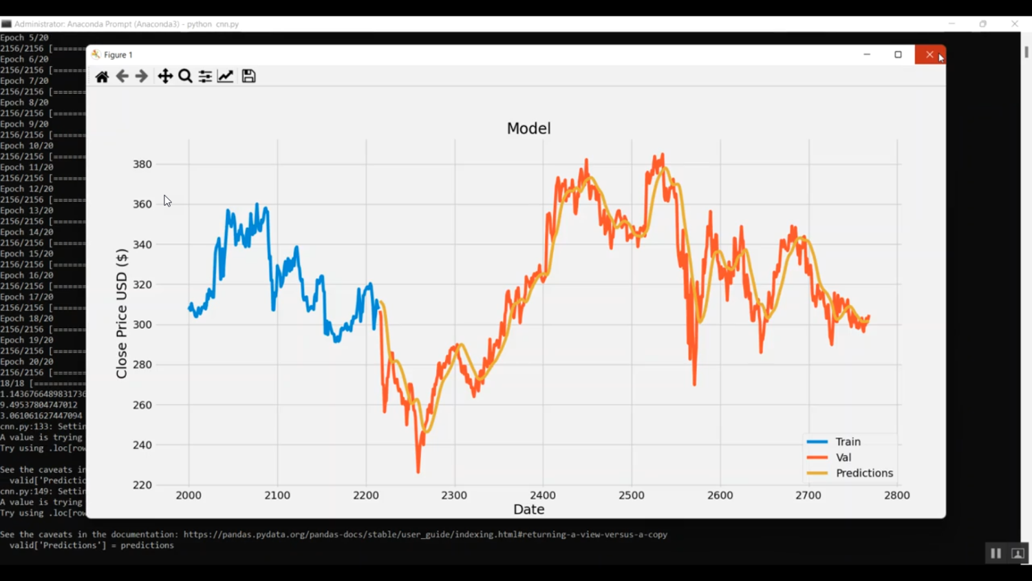 Stock market forecasting is a critical tool for investors and financial analysts to make informed decisions and optimize returns. Traditional forecasting methods often struggle with the complex, non-linear, and volatile nature of stock prices. This project implements a hybrid CNN-LSTM model in Python for stock price prediction, combining Convolutional Neural Networks (CNN) for feature extraction with Long Short-Term Memory (LSTM) networks for temporal sequence modeling. Historical stock price data, along with market indicators, is used to train the model. Python libraries such as Pandas, NumPy, Matplotlib, TensorFlow/Keras, and Scikit-learn are utilized for data preprocessing, model building, training, and visualization. The project aims to provide accurate and reliable stock price forecasts, assisting traders and financial institutions in strategic decision-making.