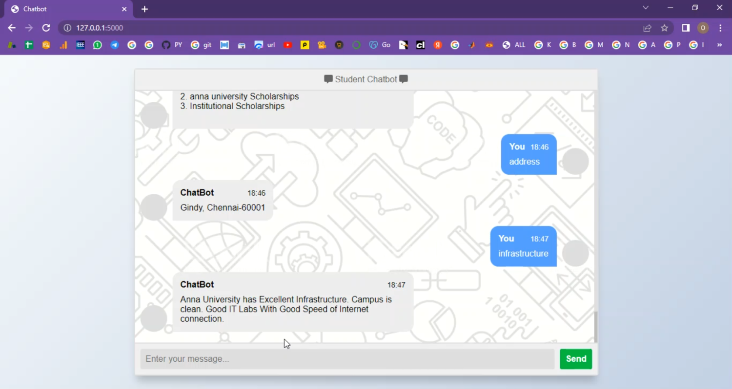 The proposed Student Chatbot in Django Python provides a centralized platform where students can interact with a chatbot integrated into the institution’s website or portal. Administrators can add or update question-answer pairs, train the chatbot to respond to new queries, and analyze query logs to improve services. Features like natural language processing (NLP), multi-language support, and integration with student information systems can further enhance the chatbot. By digitizing student support, the system improves communication, reduces staff workload, and ensures instant, accurate responses to student queries.