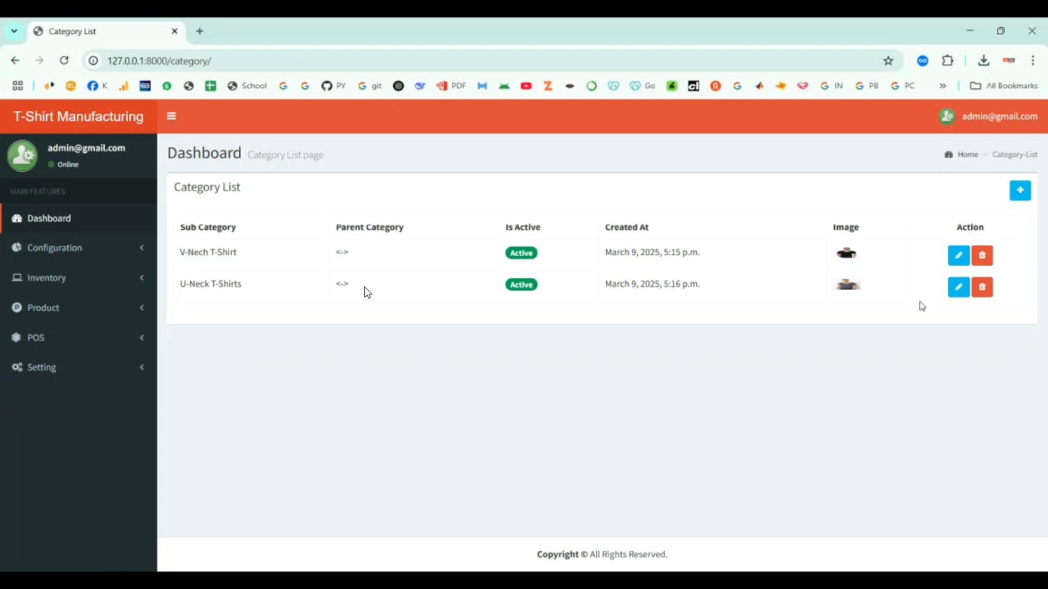 T shirt Manufacturing and Maintenance System in Django Python