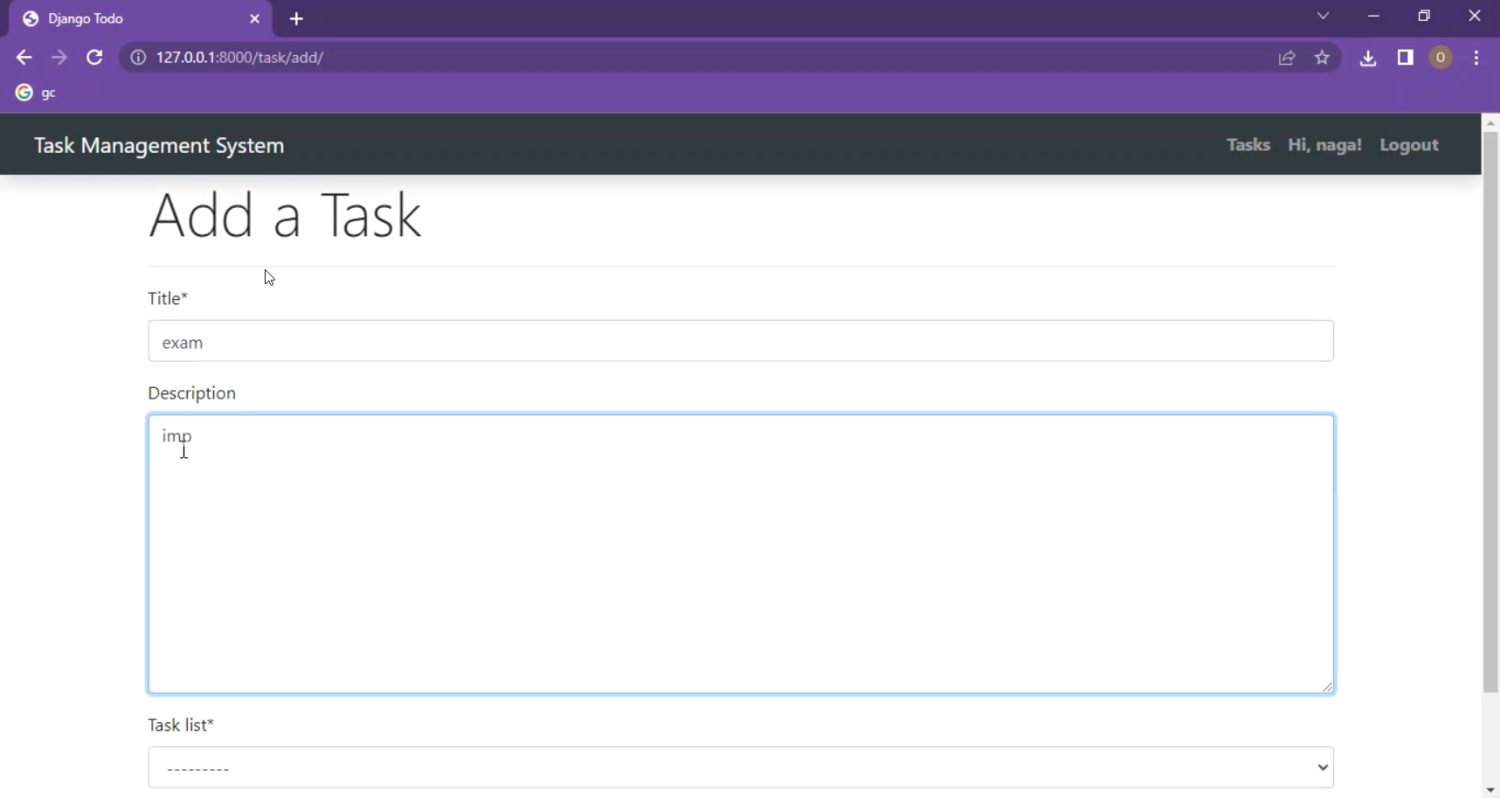 The proposed Task Management System in Django Python provides a centralized dashboard where tasks can be created, assigned to specific users, and tracked in real time. Managers can define priorities, set deadlines, and monitor progress through analytics dashboards. Features such as automated reminders, progress indicators, file attachments, and team collaboration can further enhance usability. By digitizing task management, the system improves transparency, accountability, and efficiency within teams and organizations, ensuring projects are completed on time.