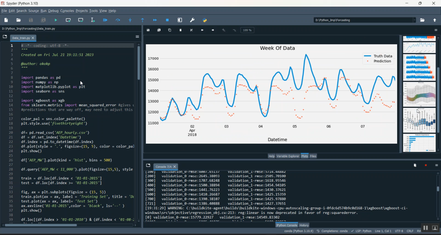 Time series forecasting is a critical tool for analyzing sequential data and predicting future trends in domains such as finance, weather, energy, and healthcare. This project focuses on Time Forecasting for Time Series Data Prediction using Python, leveraging statistical and machine learning models to predict future data points based on historical observations. The system preprocesses temporal datasets, identifies trends and seasonality, and applies predictive models such as ARIMA, LSTM, or Prophet to forecast future values. Python libraries including Pandas, NumPy, Matplotlib, Scikit-learn, and TensorFlow/Keras are utilized for data preprocessing, visualization, and model training. The project aims to provide accurate and actionable forecasts, enabling better planning, decision-making, and resource allocation across various applications.