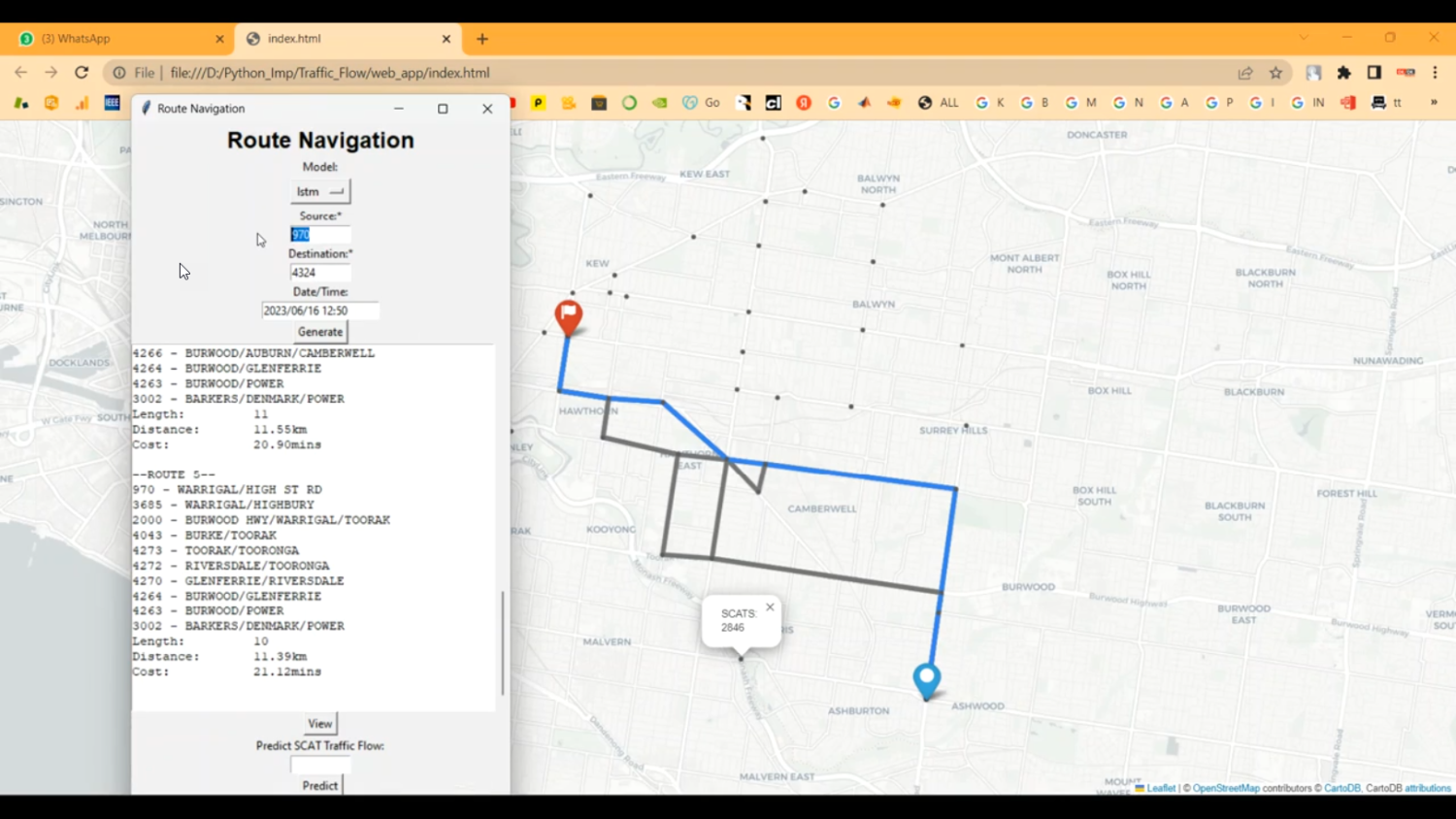 The proposed system integrates traffic flow forecasting with route navigation using machine learning and Python-based analytics. Historical and real-time traffic data are preprocessed, normalized, and used to train predictive models such as LSTM networks, CNN-LSTM hybrids, or regression-based time series models. The system predicts traffic congestion for different road segments and dynamically calculates the optimal route considering travel time, distance, and predicted congestion levels. Visualization dashboards using Matplotlib, Plotly, or Folium display traffic patterns, recommended routes, and congestion forecasts in real-time. By combining prediction and navigation, the system not only guides drivers efficiently but also supports city planners in traffic management. This intelligent system reduces travel time, fuel consumption, and traffic congestion, enhancing urban mobility and commuter experience.