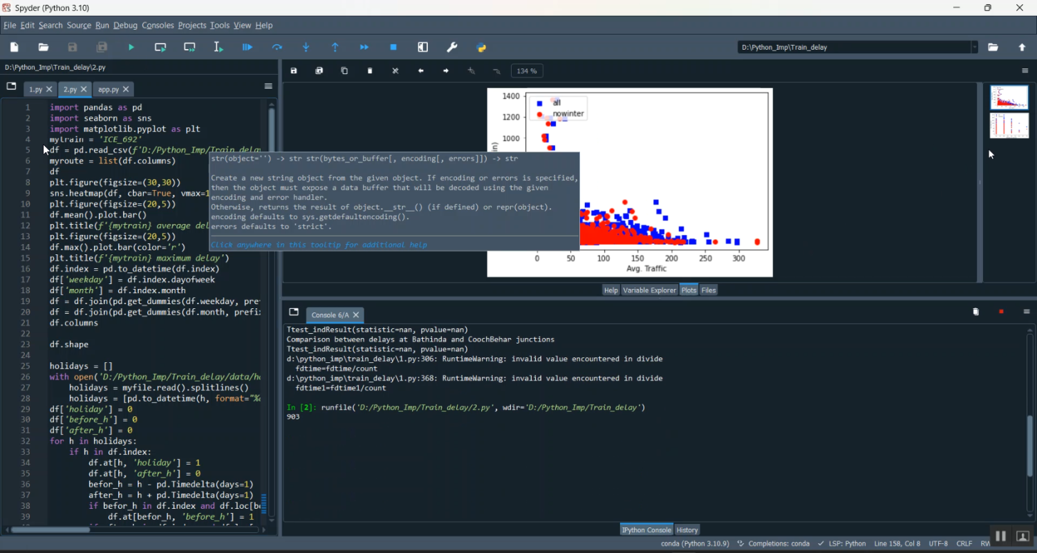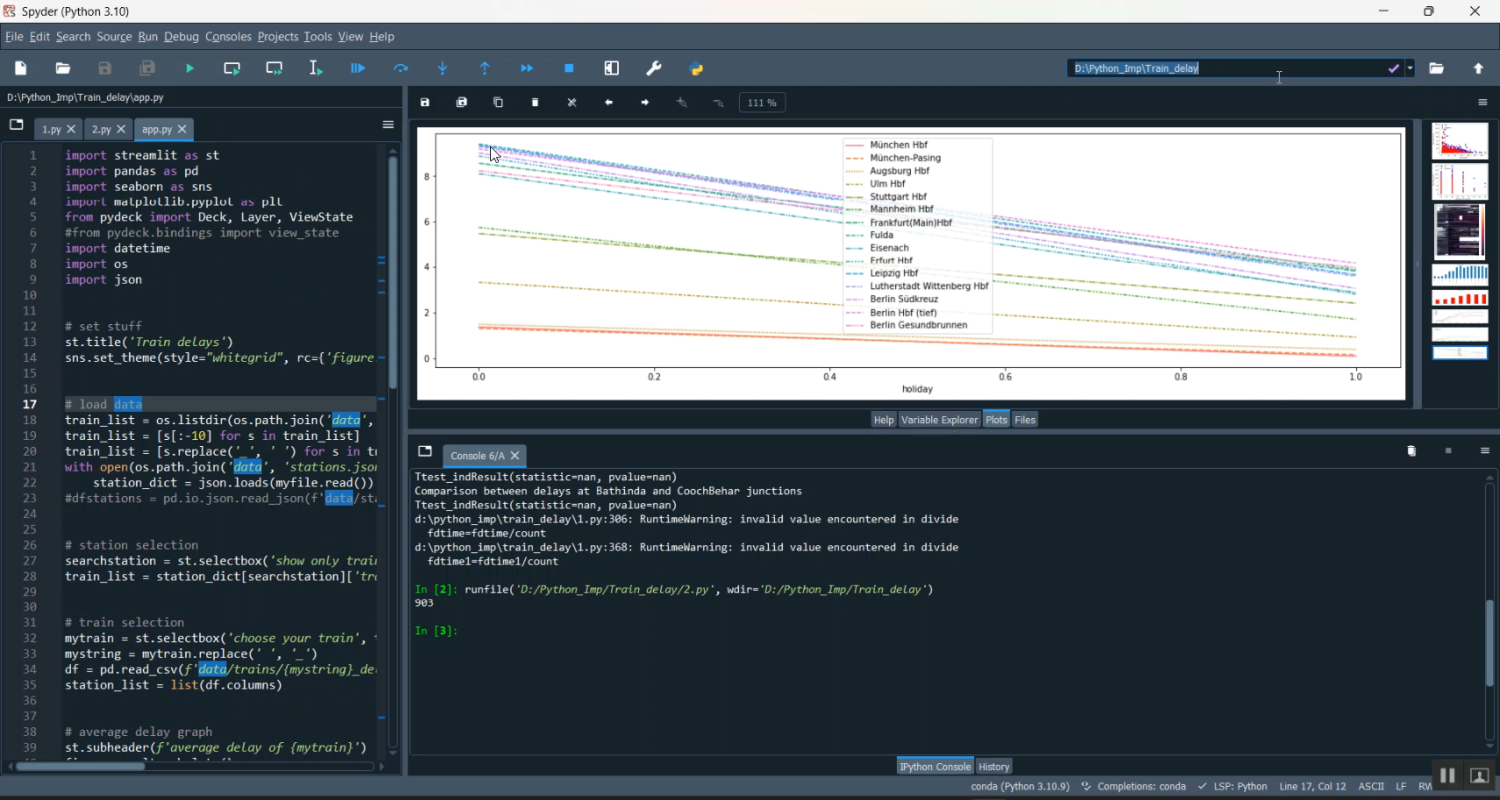 The proposed system introduces a predictive train delay analysis framework using Python and Streamlit. Historical train data is collected, cleaned, and preprocessed to handle missing values and normalize features. Feature engineering is performed to include critical variables such as route, train type, station stops, weather, and past delays. Machine learning or deep learning models, including Random Forests, Gradient Boosting Machines, or LSTM networks, are trained to predict delay times accurately. The Streamlit application provides a user-friendly interface where users can input train number, route, and departure time to receive delay predictions along with visualizations of expected delay trends. By integrating predictive analytics with a web-based interface, the system enables proactive decision-making for passengers and railway management, improves operational efficiency, and enhances user experience by reducing uncertainty about train schedules.