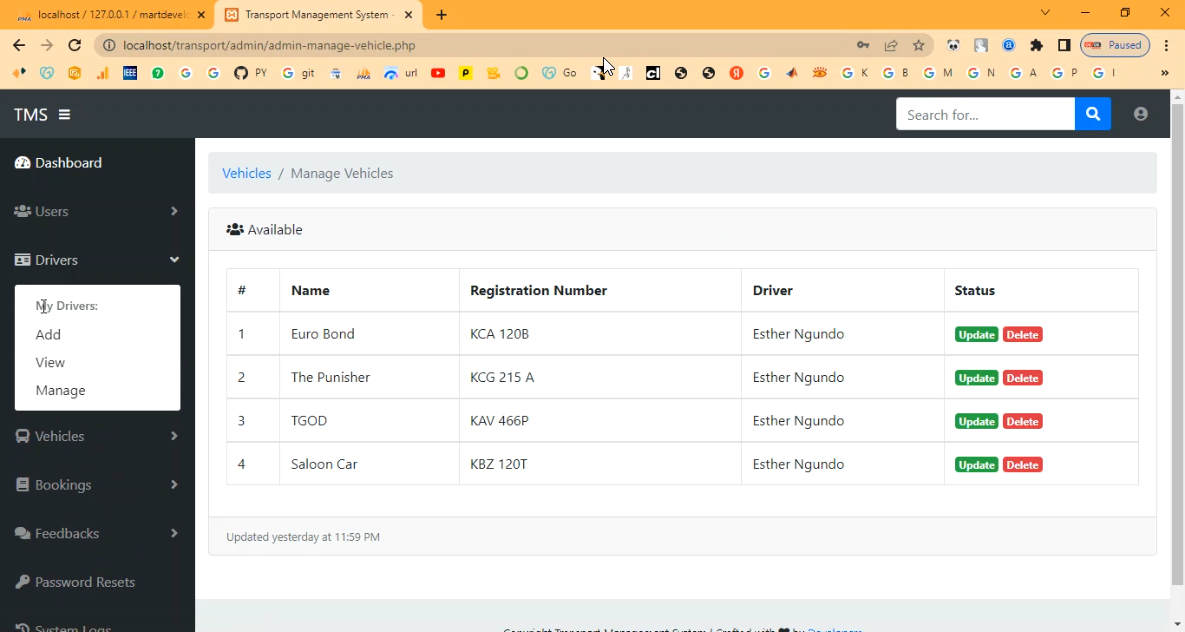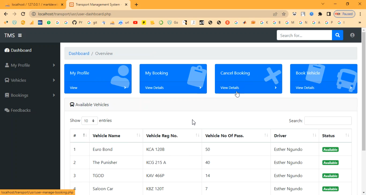 The Transport Management System is a PHP–MySQL based web application designed to manage and streamline transport operations for organizations, schools, or logistics companies. The system allows administrators to manage vehicles, drivers, routes, schedules, and trip assignments efficiently. Users can track vehicle availability, monitor trips, and generate reports on transport usage. By automating transport management, the system reduces manual errors, improves efficiency, and ensures better coordination between transport staff and management.