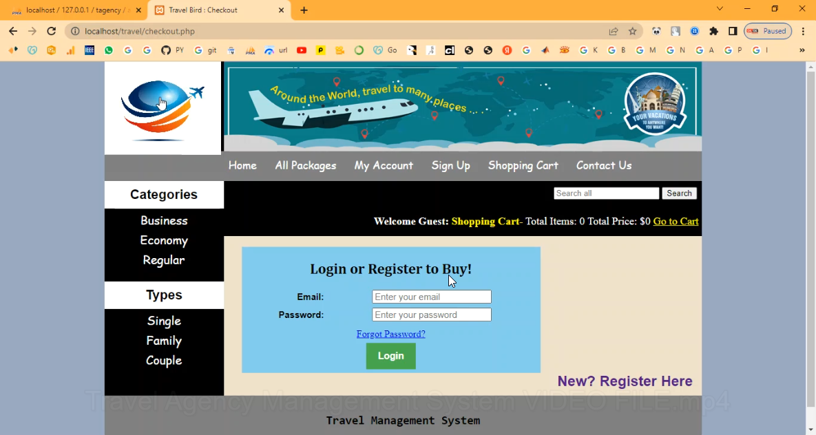 The proposed Travel Agency Management System in PHP digitizes the travel booking and management process. Administrators can add or update travel packages, manage customer bookings, track payments, and generate invoices automatically. Customers can browse available tours, view details, book trips online, and receive booking confirmations via email or SMS. The system also generates reports on bookings, revenue, and package trends. By automating these processes, the system ensures accurate record-keeping, faster service, and improved transparency between the travel agency and its customers.