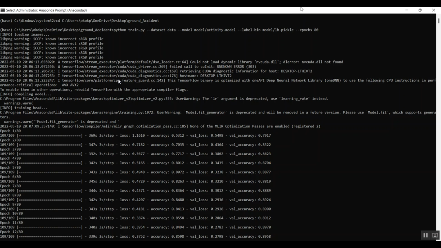 Tunnel accidents, such as vehicle collisions or fires, can lead to severe damage and loss of life due to confined spaces and limited evacuation routes. This project focuses on Tunnel Accident Detection using Convolutional Neural Networks (CNN) and Video-Based Analysis in Python, which automatically monitors live video feeds from tunnel surveillance cameras to detect accidents in real-time. The system preprocesses video frames, extracts relevant features, and applies a CNN model to identify abnormal events, including vehicle crashes, congestion, or fire hazards. Python libraries such as OpenCV, TensorFlow/Keras, NumPy, and Matplotlib are used for video processing, model training, and visualization. The system aims to provide early accident detection, enabling rapid emergency response and improving tunnel safety management.