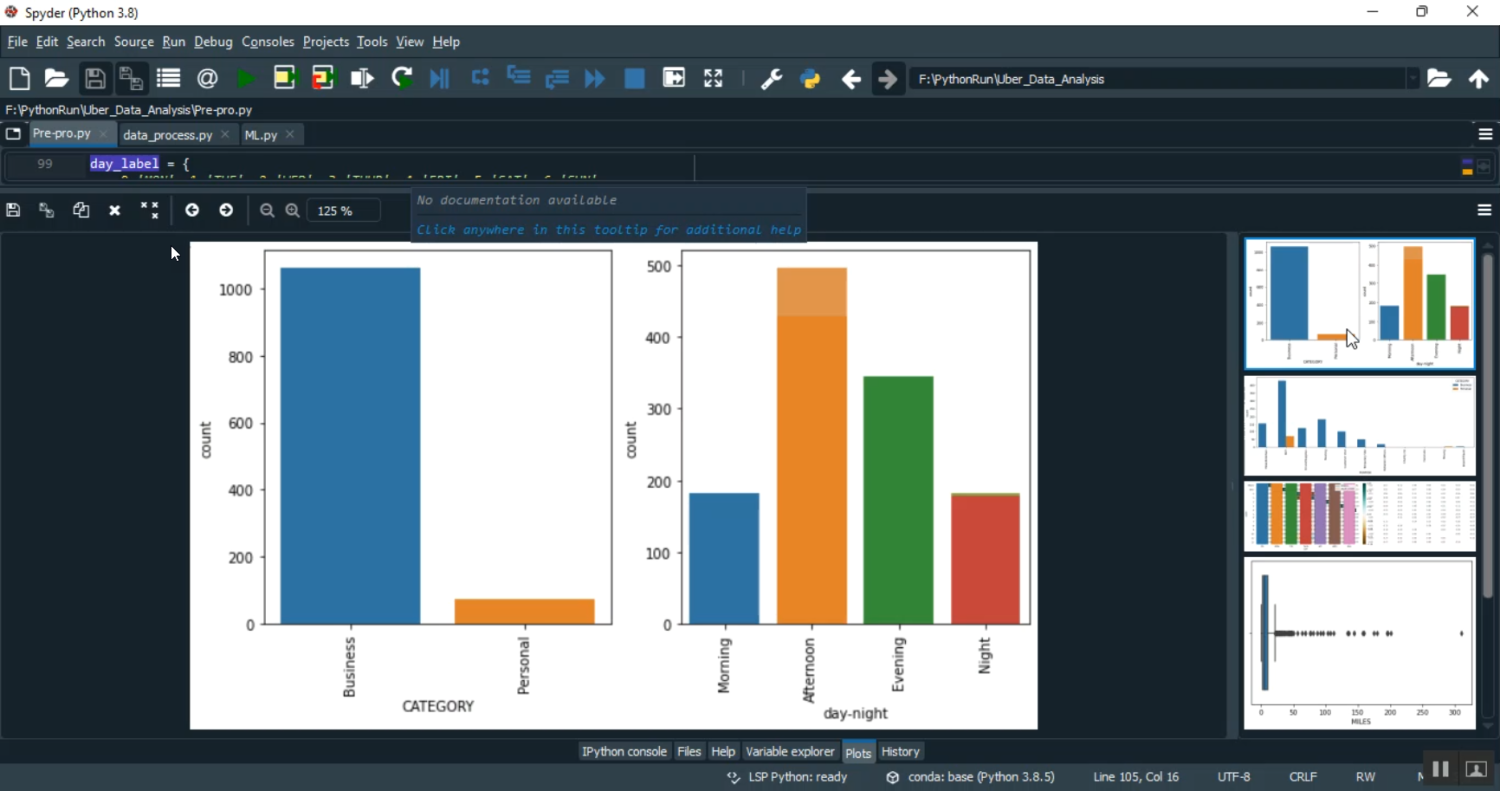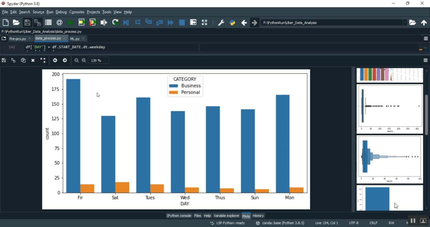 The proposed system implements a Python-based Uber data analysis framework using machine learning classifiers. Trip data is collected and preprocessed by handling missing values, encoding categorical variables, normalizing features, and performing feature engineering. Supervised machine learning classifiers such as Random Forest, Gradient Boosting, or Support Vector Machines are trained on labeled datasets to predict outcomes like trip duration, fare range, or demand classification. Data visualization using Matplotlib and Seaborn helps in identifying trends, hotspots, and anomalies. The system can provide predictions and classifications in real-time, enabling Uber or similar ride-hailing services to optimize routes, forecast demand, improve driver allocation, and enhance customer satisfaction. By combining data analysis with predictive modeling, the system delivers actionable insights and scalable solutions for ride-hailing analytics.