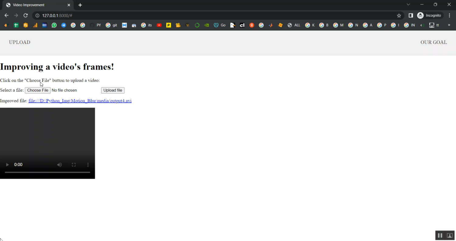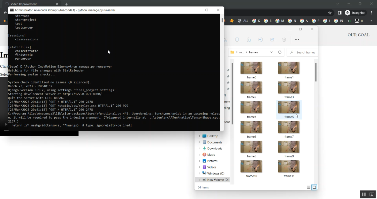 The proposed system implements a Python-based video deblurring framework that converts motion-blurred videos into non-blurred outputs. The system first extracts frames from input videos using OpenCV and preprocesses them for noise reduction and normalization. A deep learning model, such as a CNN-based deblurring network or a Generative Adversarial Network (GAN), is trained on paired blurred and sharp frames to learn motion blur restoration. Each video frame is processed through the trained model, and the resulting sharp frames are reassembled into a high-quality video. The system can also incorporate temporal consistency techniques to ensure smooth transitions between frames. By combining video processing with advanced deep learning deblurring, the system delivers high-quality, non-blurred videos suitable for surveillance, video editing, and computer vision applications.