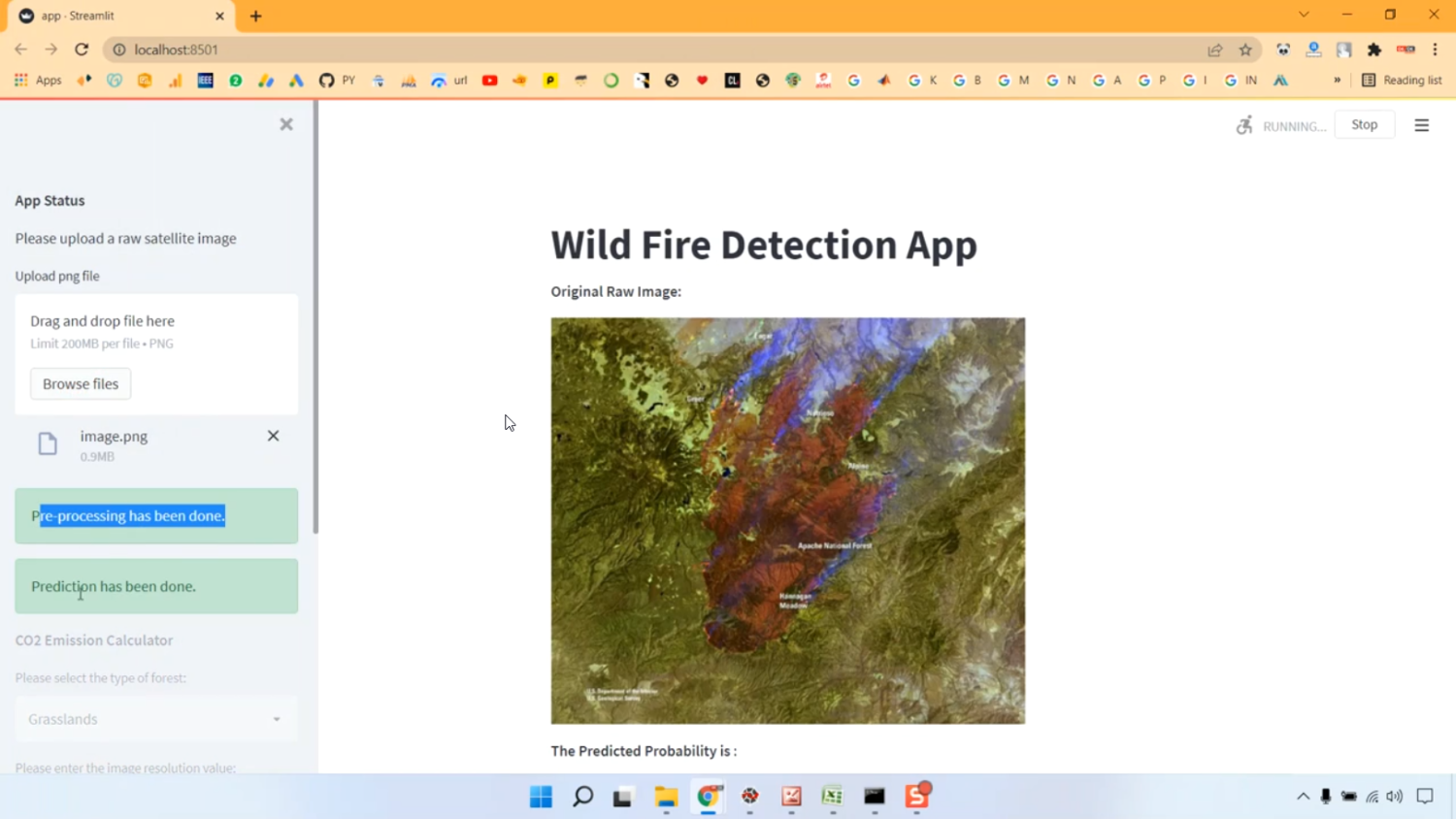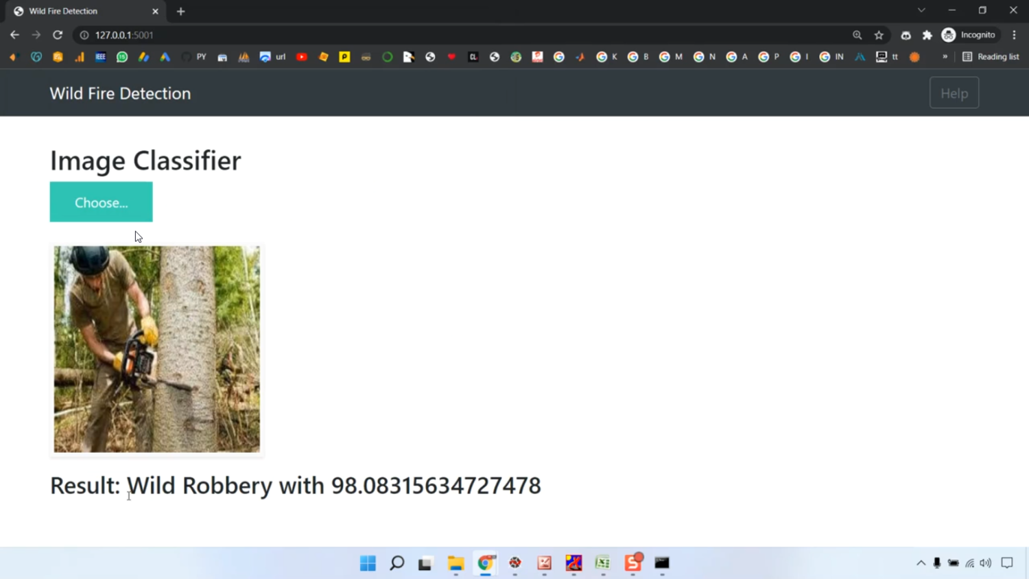 The proposed system implements a Python-based wildfire detection framework using CNN and Streamlit. Image or satellite data is collected and preprocessed to enhance fire-specific features and reduce noise. A Convolutional Neural Network (CNN) is trained to identify wildfire regions based on visual patterns, smoke, and heat signatures. The Streamlit application provides a user-friendly interface for uploading images or videos, displaying predicted wildfire areas, and visualizing detection confidence. By combining deep learning with interactive web deployment, the system offers automated, accurate, and real-time wildfire detection. This approach enables faster decision-making for firefighting authorities, improves monitoring in remote regions, and enhances overall environmental safety.